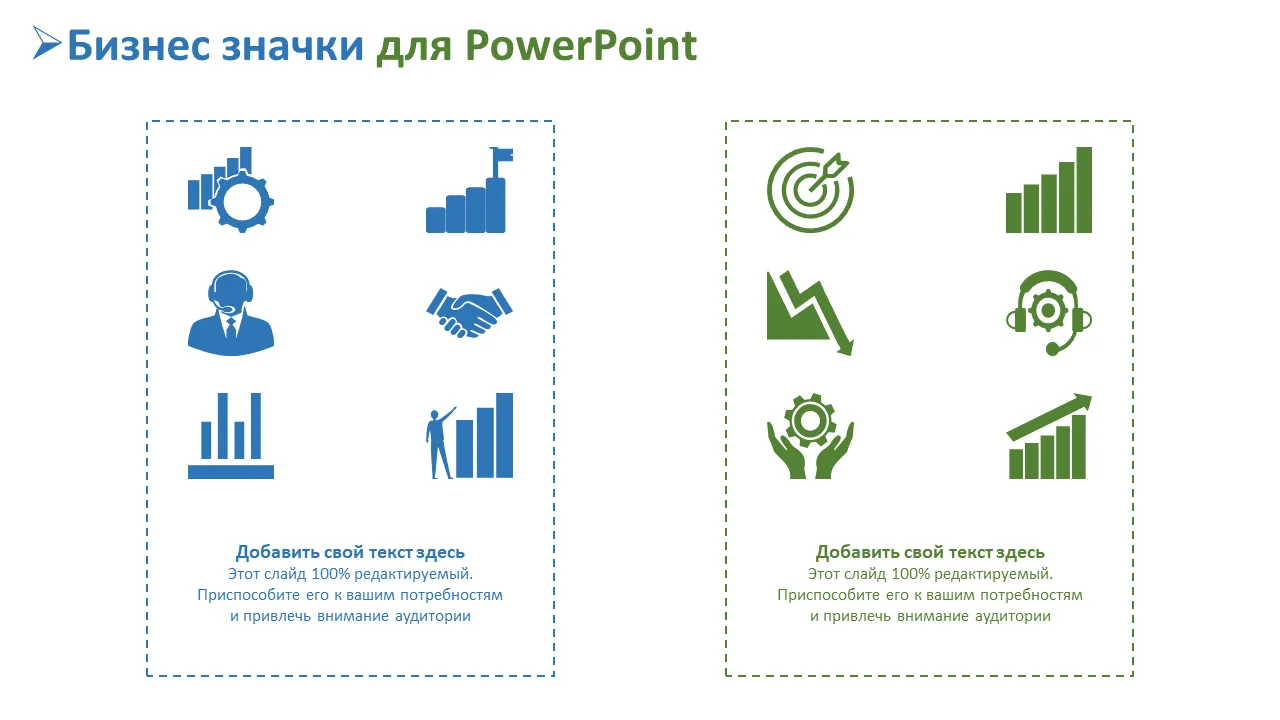 Загрузите элегантный шаблон PowerPoint Business Icons, содержащий современные визуальные элементы для корпоративных презентаций, стратегических докладов и презентаций для инвесторов. Идеально подходит для профессионалов бизнеса.