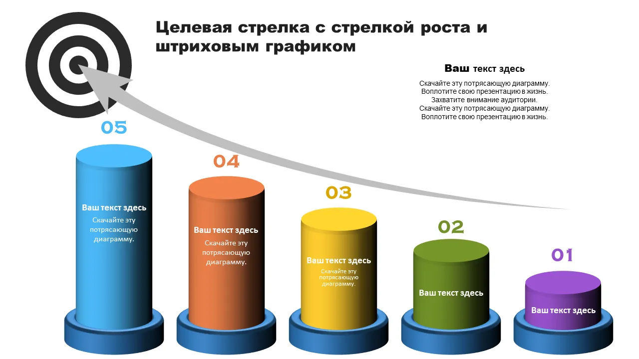 Динамичный шаблон PowerPoint с целевой стрелкой и стрелкой роста для презентаций бизнес-стратегий. Идеально подходит для инвесторов, стартапов и команд, ориентированных на рост. Загрузите сейчас и получите профессиональный эффект.