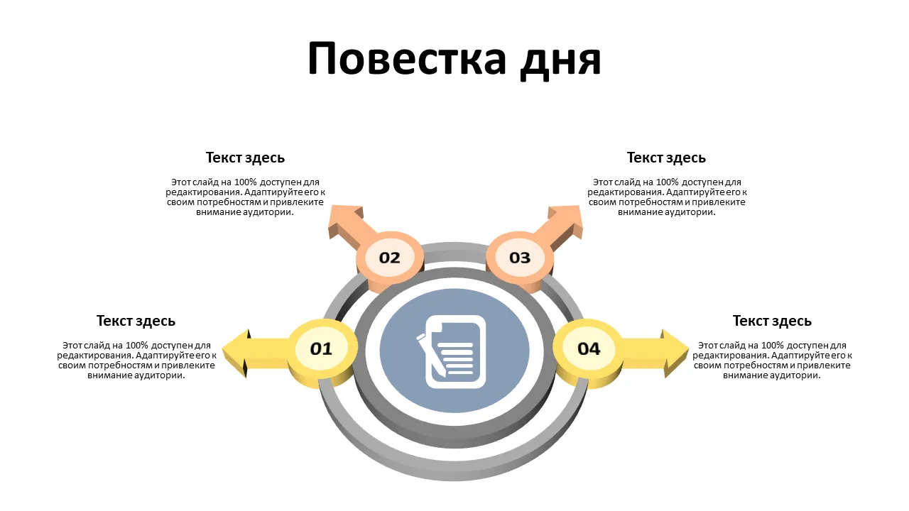 Профессионально разработанные идеи повестки дня для презентаций на собраниях. Редактируемые слайды с современным дизайном, идеально подходящие для бизнес-профессионалов, консультантов и команд. Чистая планировка, готовая к настройке.