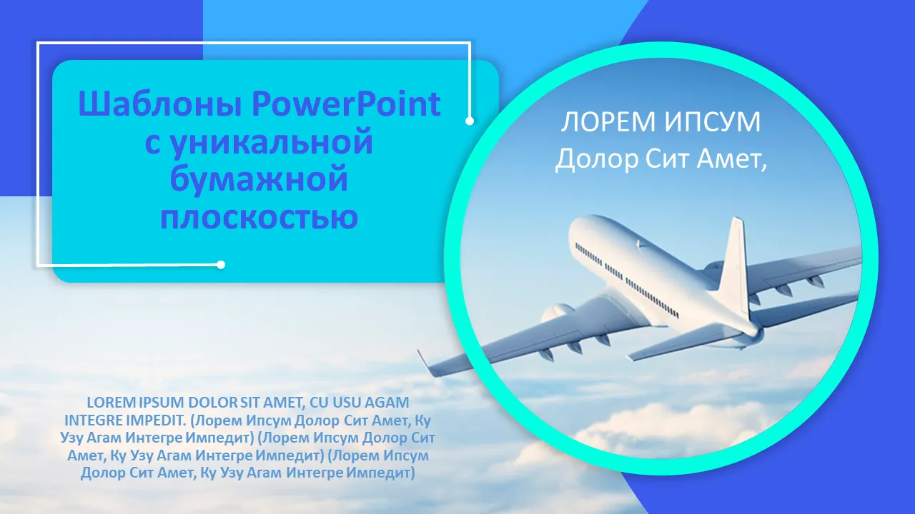 Современный шаблон PowerPoint на тему синего бумажного самолета, идеально подходящий для презентаций бизнес-стратегий. Чистый дизайн, профессиональная верстка и возможность настройки для презентаций, отчетов и презентаций для инвесторов.