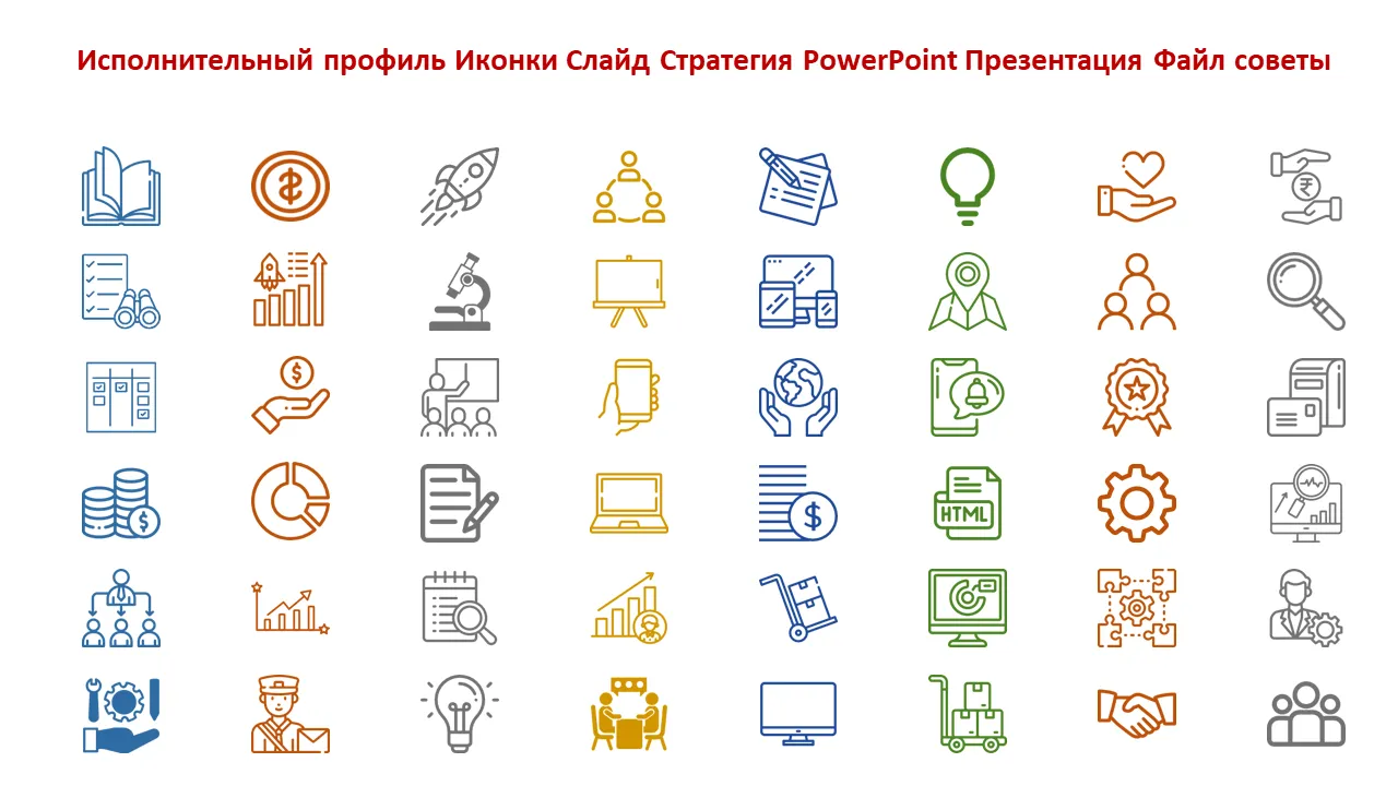 Значки профиля руководителя. Стратегия слайдов. Советы по файлам презентаций Powerpoint.