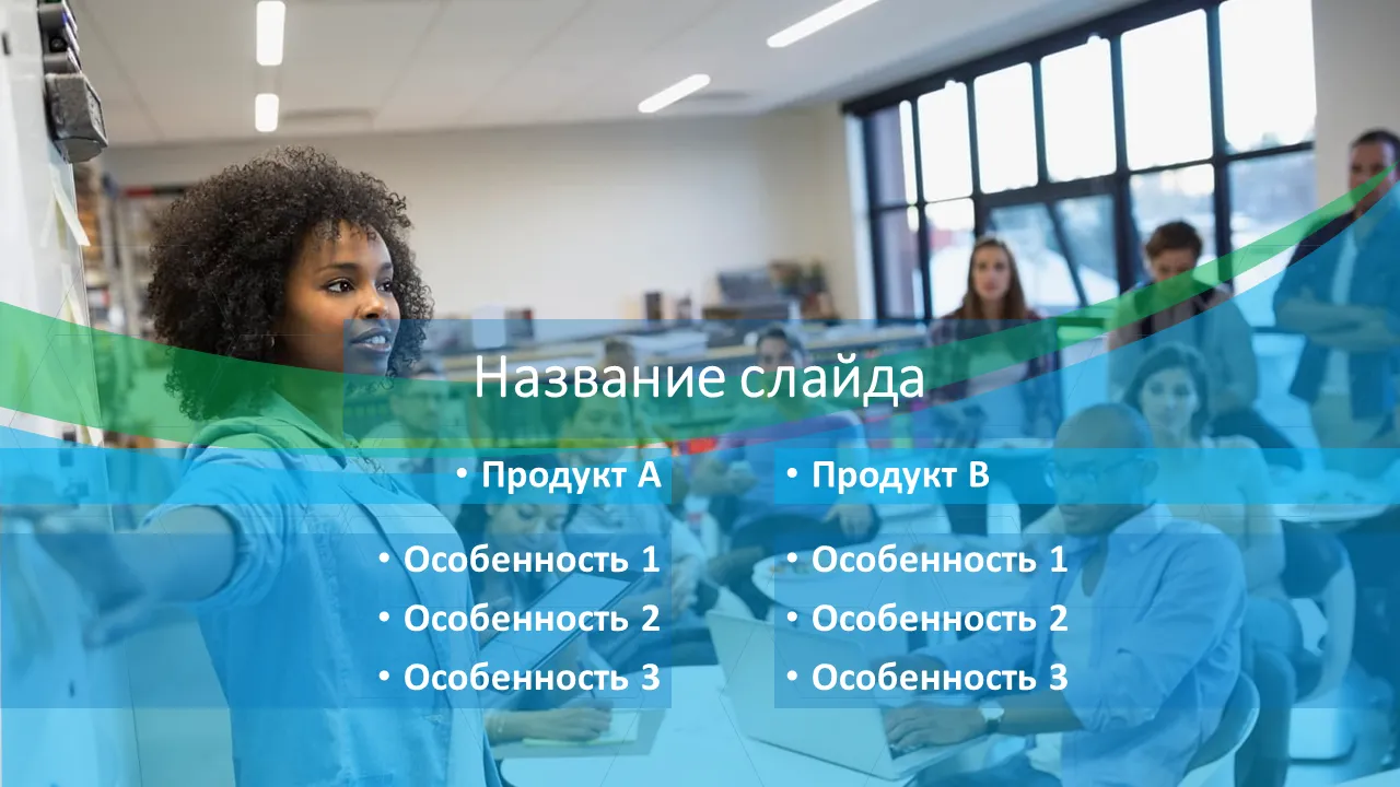 - Предварительно отформатированные макеты слайдов, помогающие докладчикам разобраться с пунктами повестки дня и ключевыми моментами