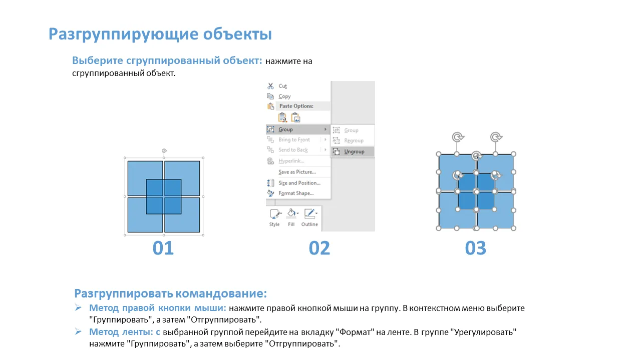 - Инструкции по группировке и разгруппировке для расширенного редактирования