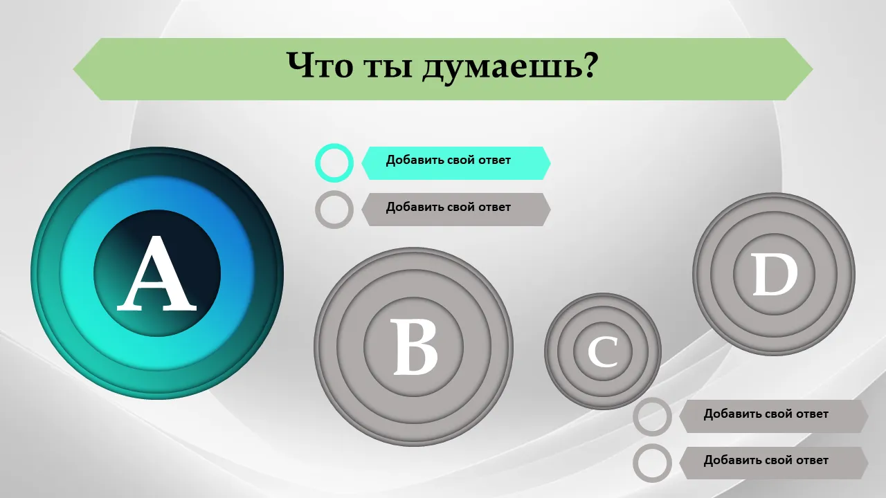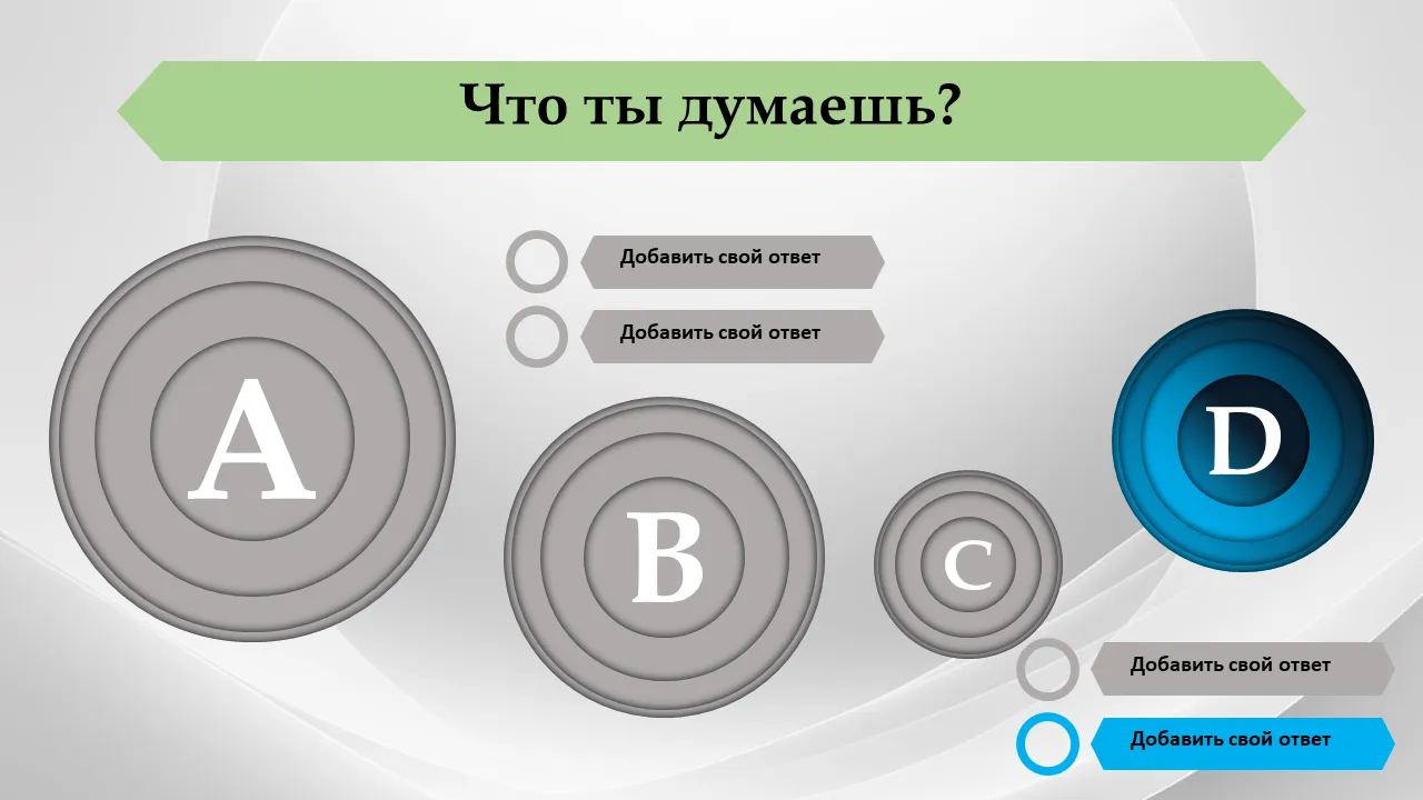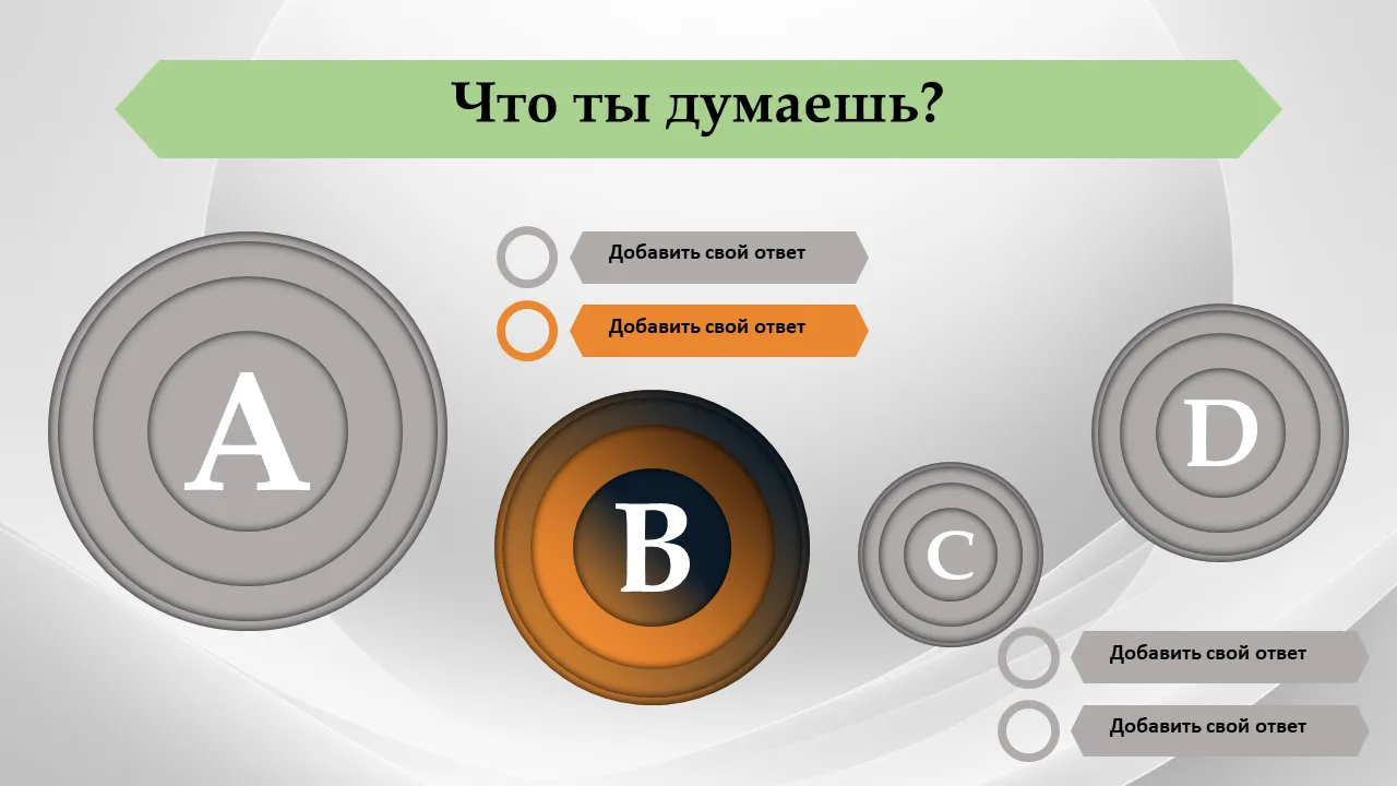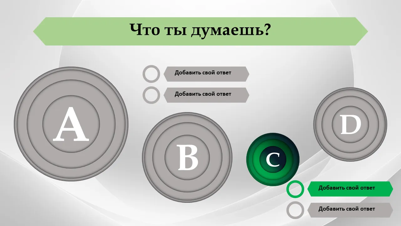 - Четыре различных варианта ответа на слайд для четкого выбора пользователем