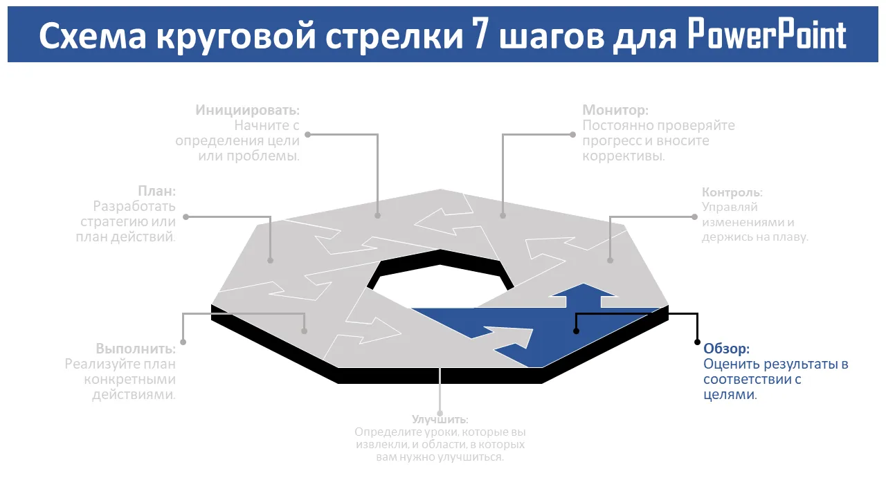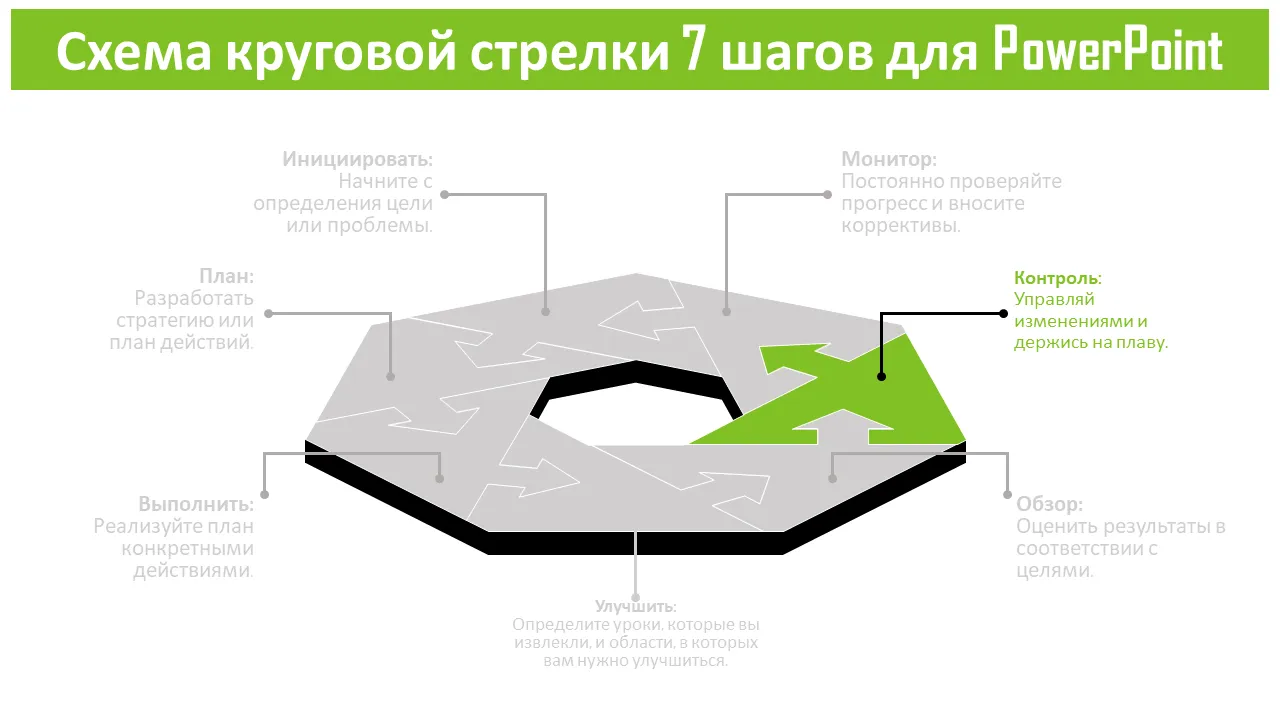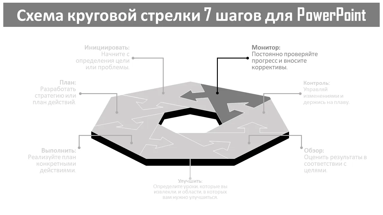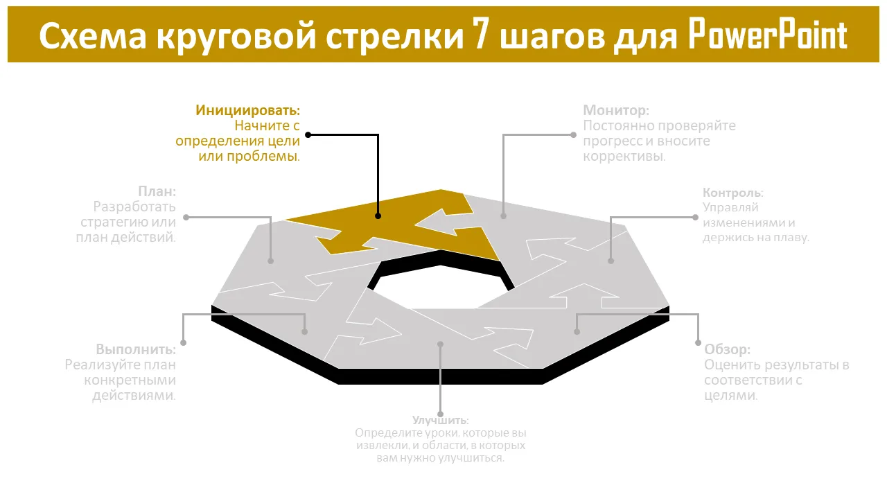 7-ступенчатая круговая диаграмма со стрелками. Объяснение шаблона PowerPoint.