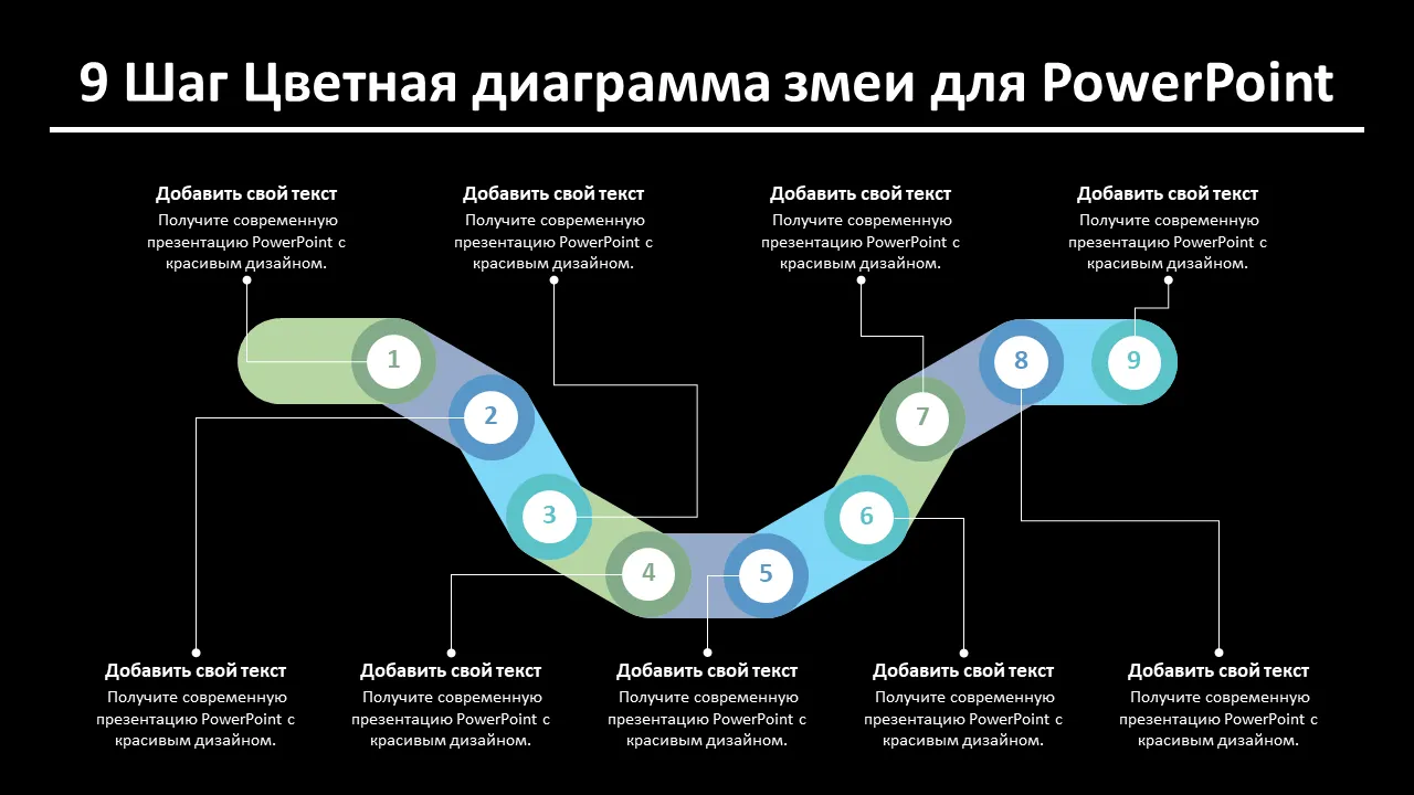 9-шаговая диаграмма красочной змеи. Объяснение шаблона PowerPoint