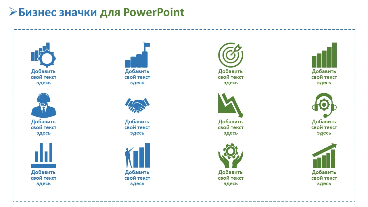 - Значки высокого разрешения, совместимые со всеми версиями PowerPoint