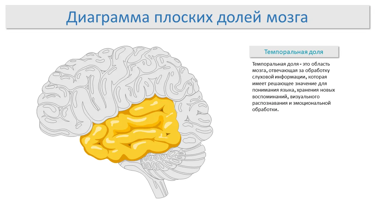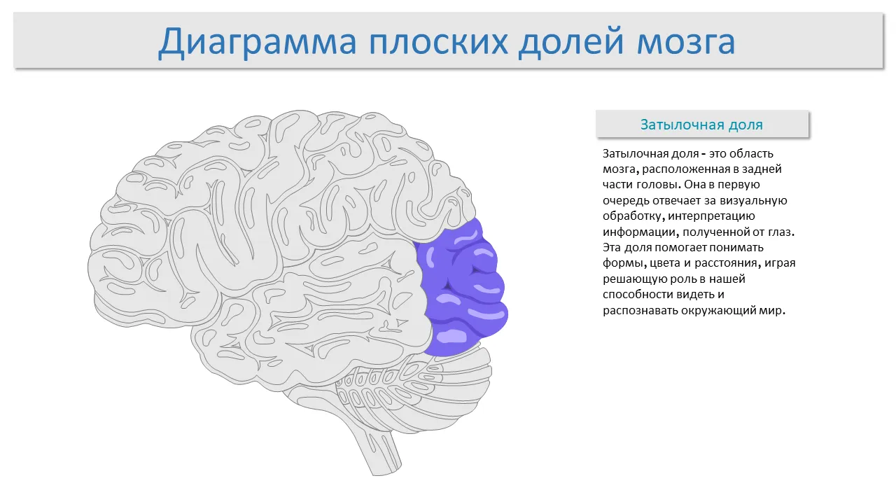 Схема поперечного сечения долей мозга. Объяснение шаблона PowerPoint