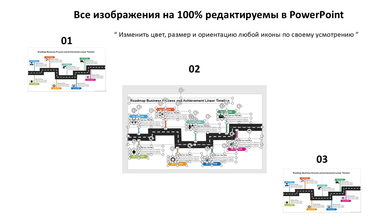 Характеристики Дорожная карта бизнес-процессов и достижений. Линейная временная шкала. Плоский дизайн PowerPoint. Шаблон PowerPoint для профессиональных презентаций.