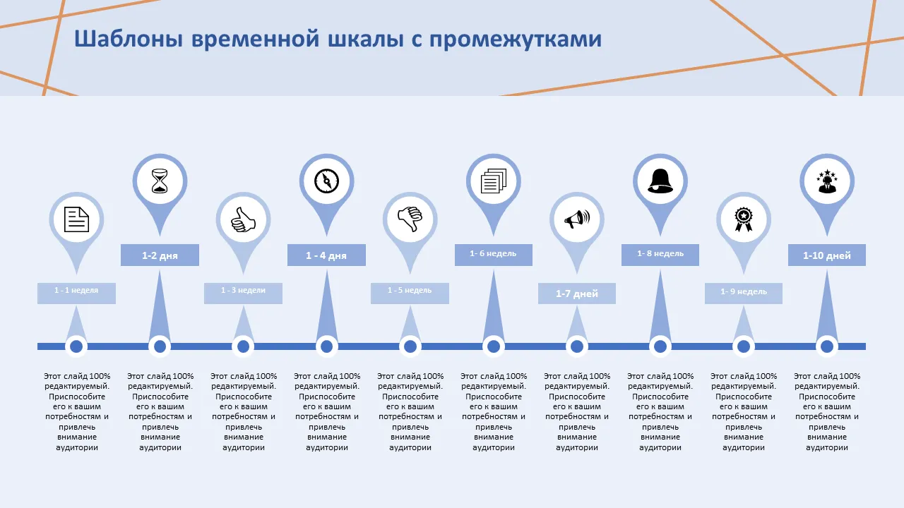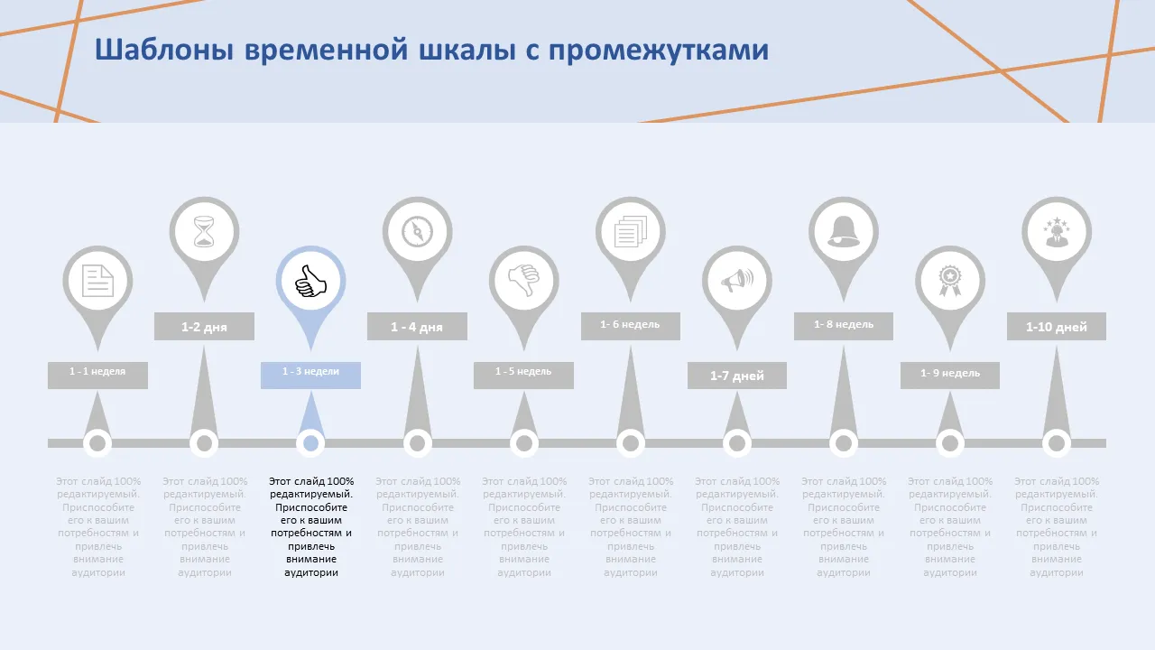 - Визуальные маркеры для интервалов 1–5 недель и 1–4 дней для выделения ключевых этапов.