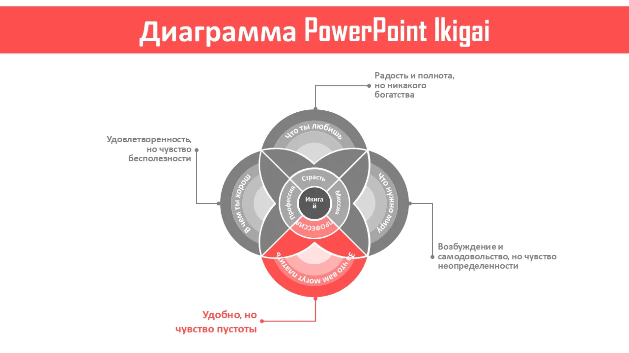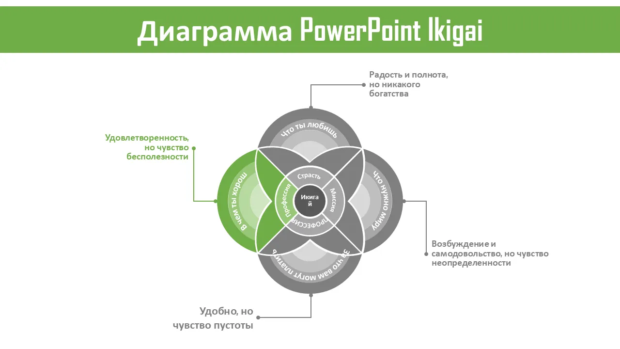 Объяснение шаблона презентации диаграммы Ikigai PowerPoint