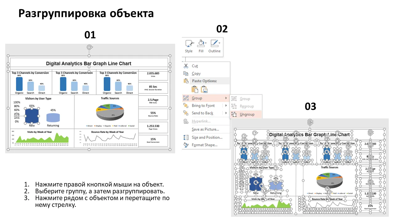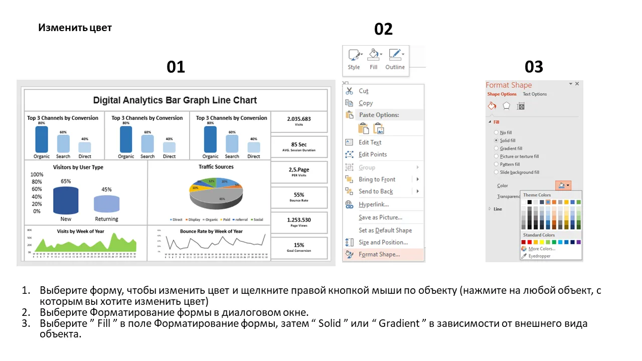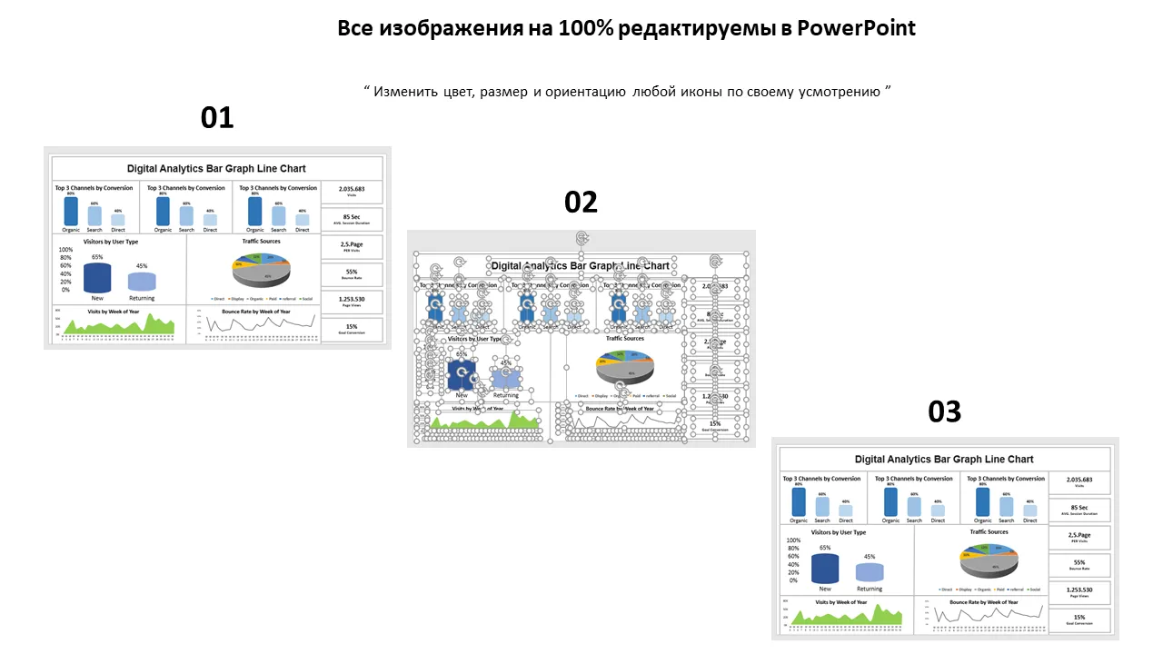 Этот шаблон PowerPoint создан, чтобы помочь пользователям визуализировать ключевые показатели цифровой производительности с помощью понятных гистограмм и линейных диаграмм. Он идеально подходит для представления аналитических данных о бизнес-стратегии, эффективности маркетинга и операционных обзоров. Шаблон поддерживает повествование данных с помощью интуитивно понятной визуализации, подчеркивающей тенденции, рост и сравнения.