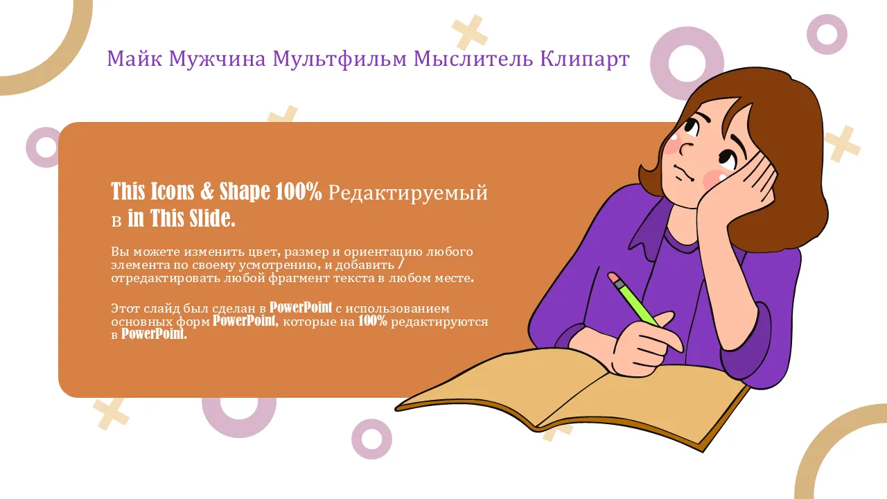 Майк мужской мультфильм Мыслитель клипарт Шаблон PowerPoint для профессиональных презентаций