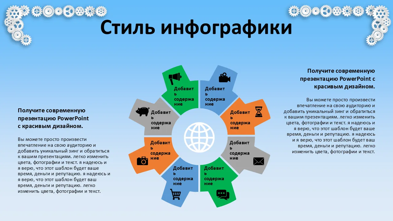 - Единый язык дизайна для всех слайдов для связного повествования.