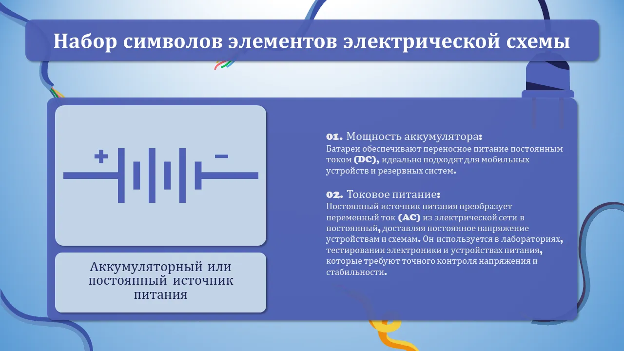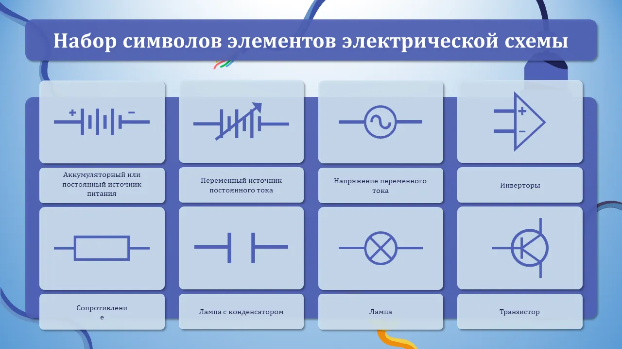 Набор элементов символов электрических цепей для пояснений в Powerpoint