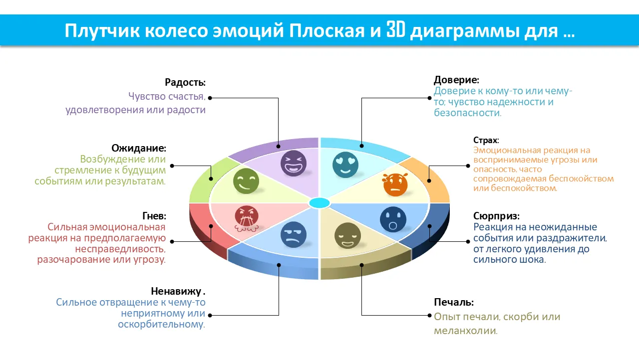 Плутчик Колесо эмоций Плоские и 3D-диаграммы для… Шаблон PowerPoint для профессиональных презентаций