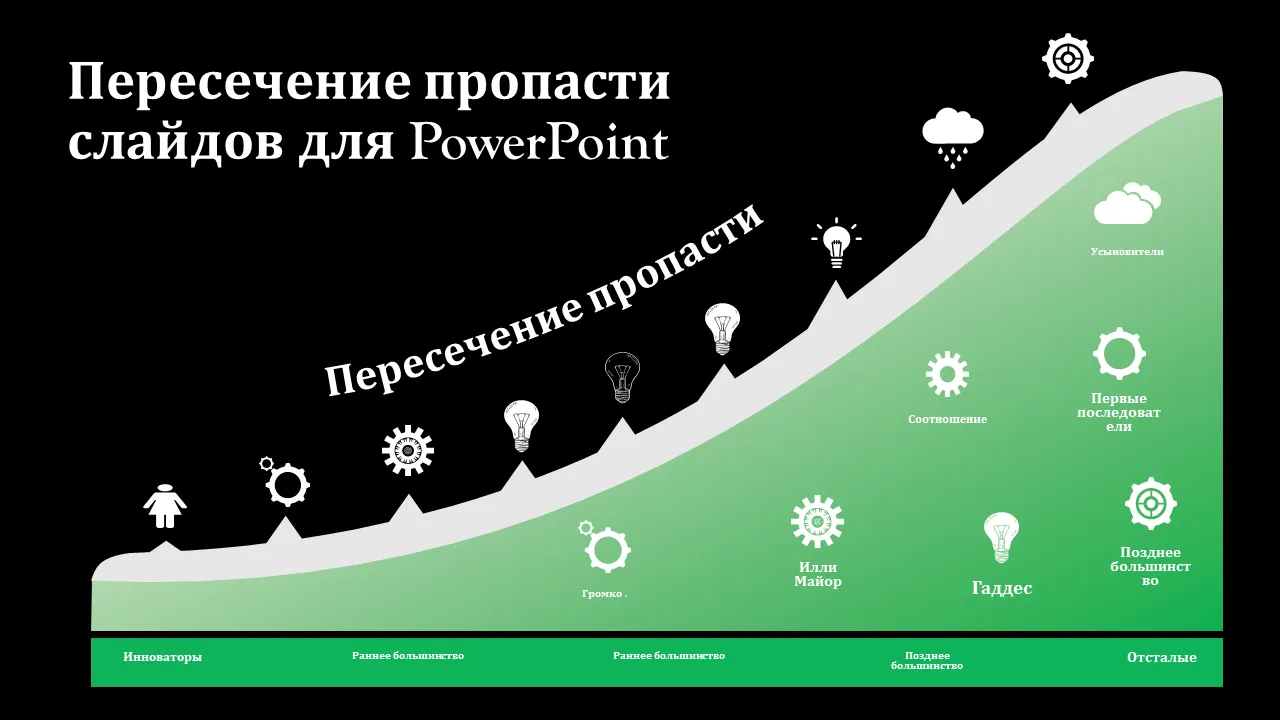 Этот шаблон PowerPoint создан, чтобы помочь предпринимателям и менеджерам по продуктам визуально донести концепцию «Пересекая пропасть» во время встреч с инвесторами или внутренних стратегических сессий. Основное внимание в нем уделяется проведению аудиторией критического перехода от ранних пользователей к основным рынкам. Дизайн чистый, современный и оптимизирован для ясности, что делает сложные кривые внедрения и сегментацию рынка легко понятными для заинтересованных сторон.