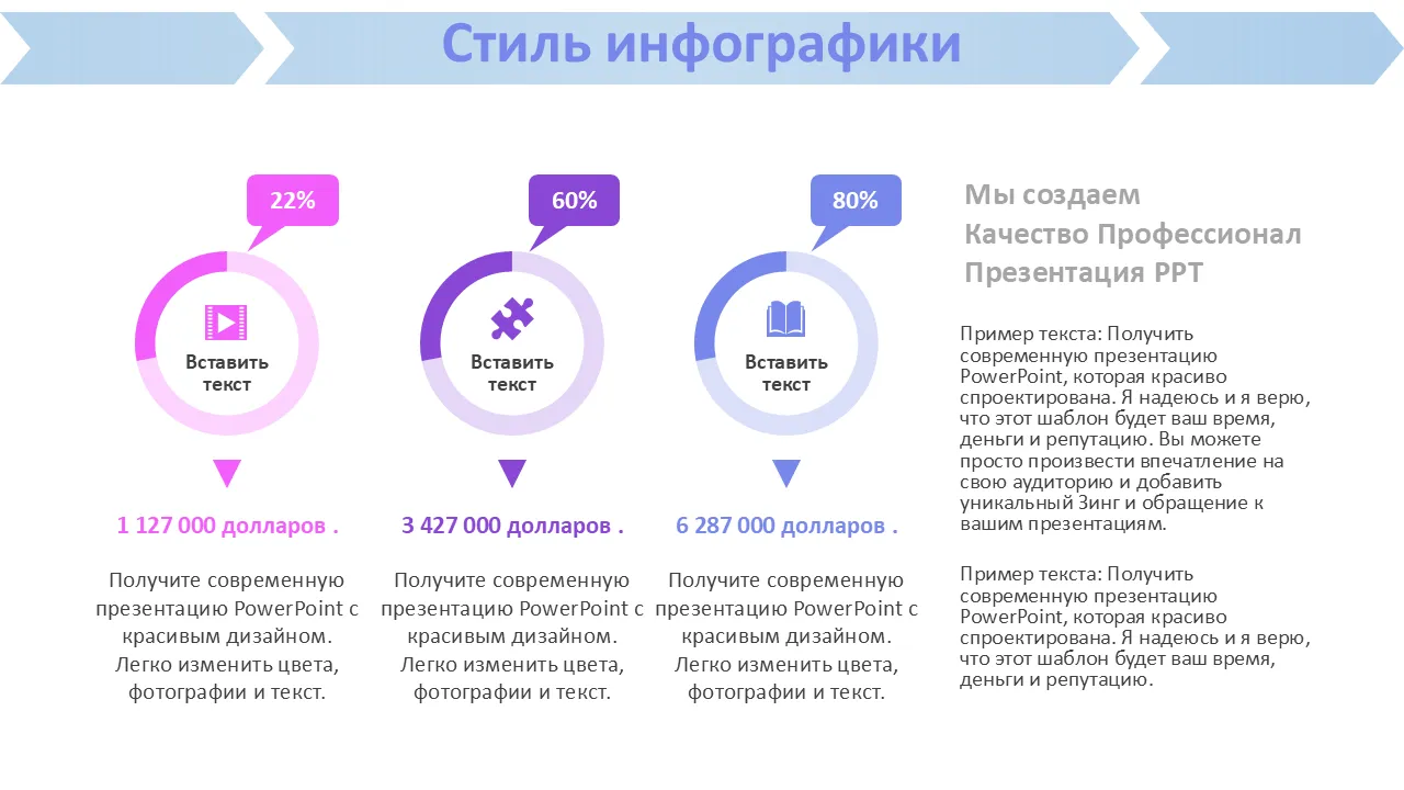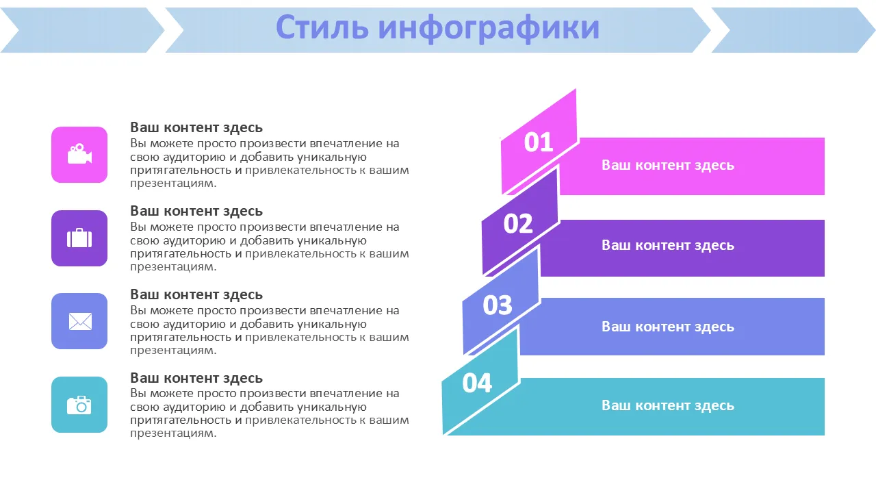 - Предварительно разработанные макеты инфографики для пошаговых процессов