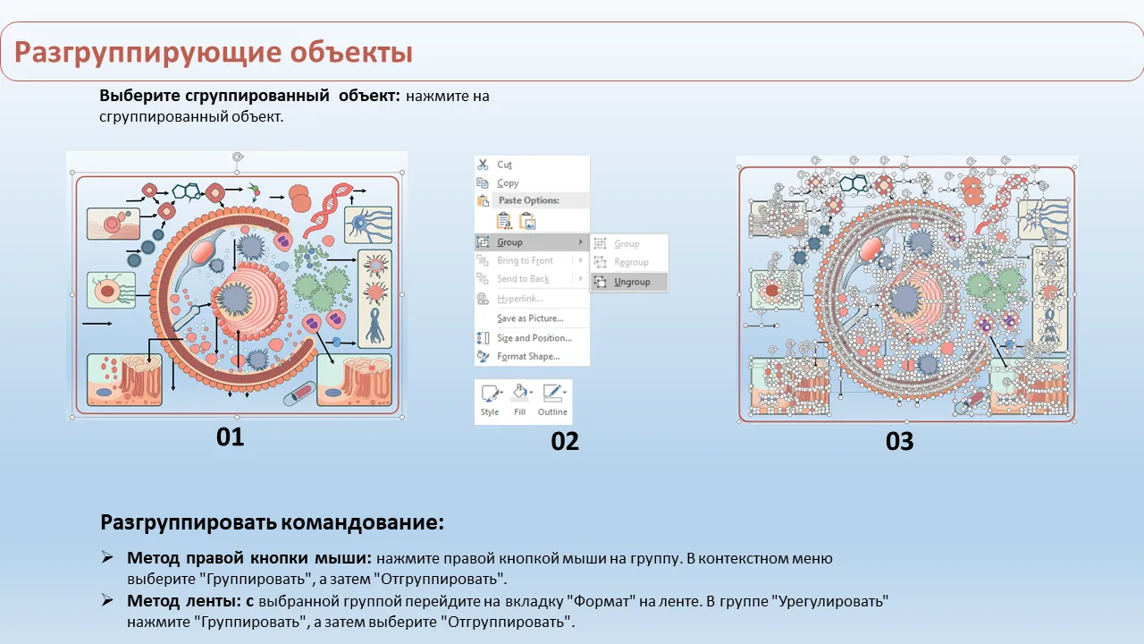 Характеристики Шаблон диаграммы процесса эндоцитоза Powerpoint