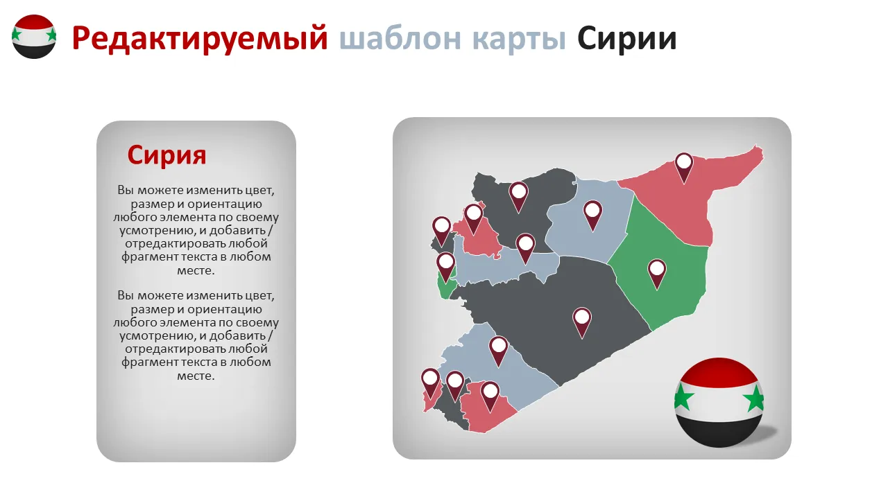 Бизнес-аналитики, консультанты и региональные стратеги используют этот шаблон для представления результатов исследований рынка, карт сегментации клиентов или логистики цепочки поставок в Сирии. Это особенно полезно для НПО, международных фирм и государственных учреждений, работающих в регионе. Руководители, готовящие обновления для инвесторов или презентации корпоративных стратегий, получают выгоду от его четкого макета и профессиональной эстетики.
