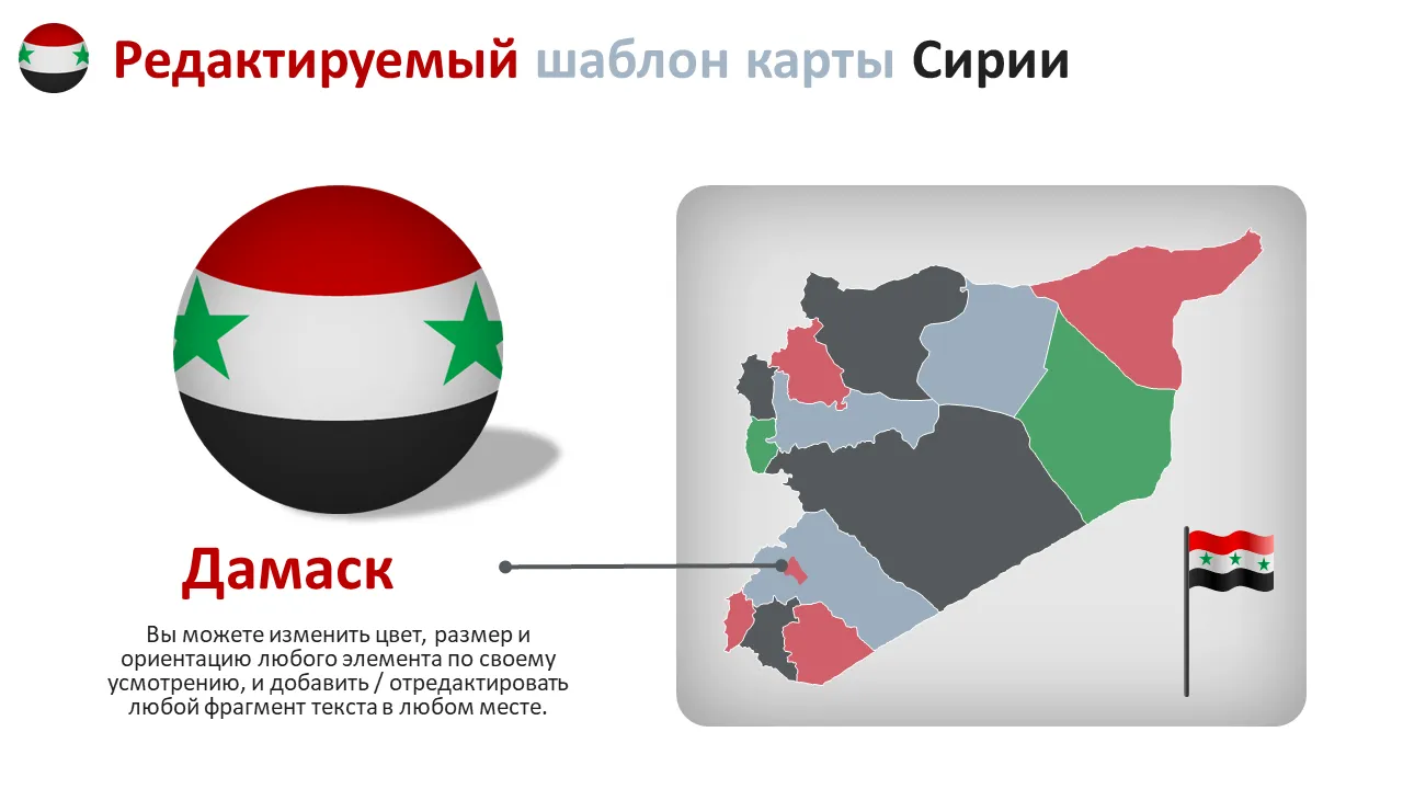 Этот шаблон PowerPoint предлагает визуально привлекательную карту Дамаска, Сирия, предназначенную для поддержки стратегических бизнес-презентаций. Он идеально подходит для команд, которым необходимо проиллюстрировать географический контекст, динамику регионального рынка или оперативную логистику в столице Сирии. Шаблон объединяет четкую визуальную иерархию и интуитивно понятные элементы дизайна, которые помогают пользователям уверенно передавать сложные пространственные данные.