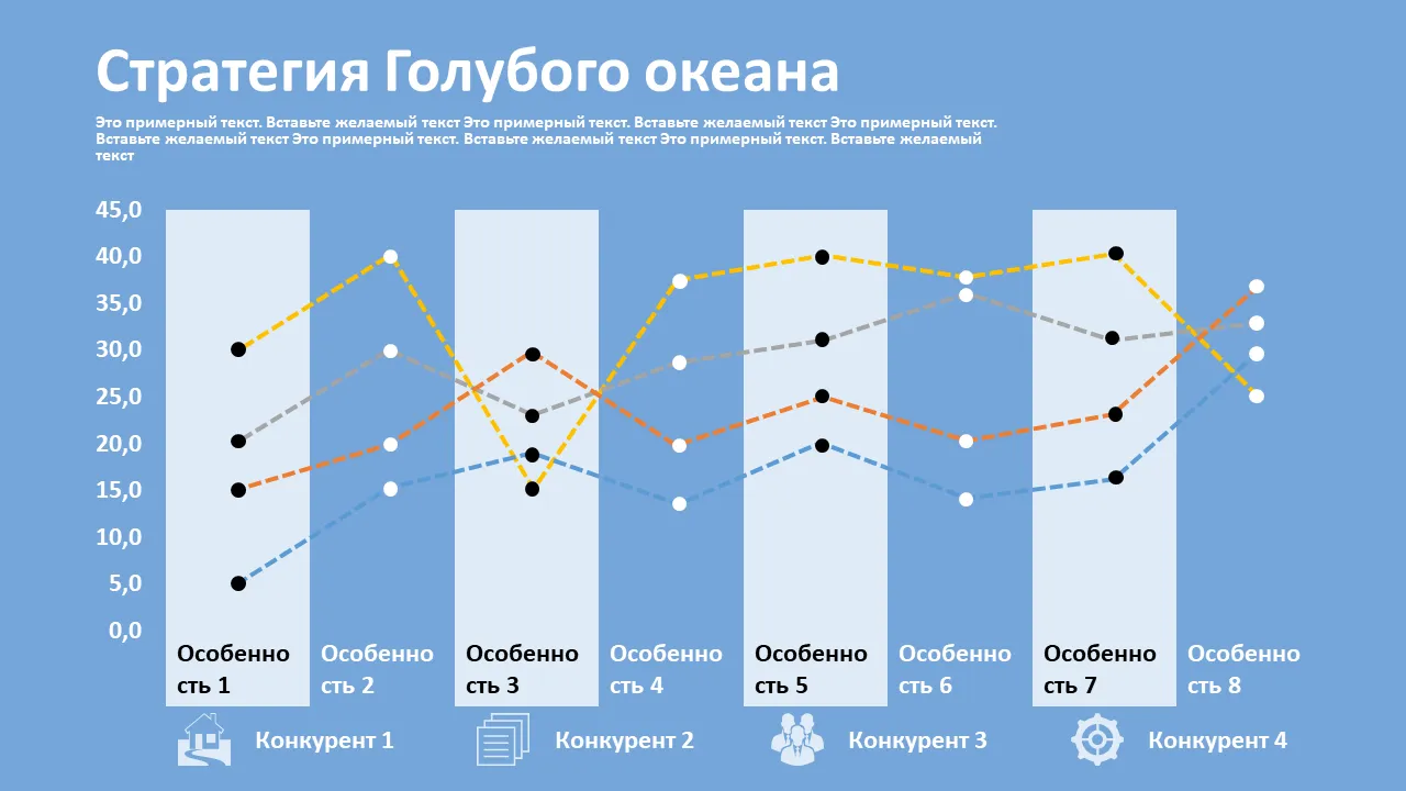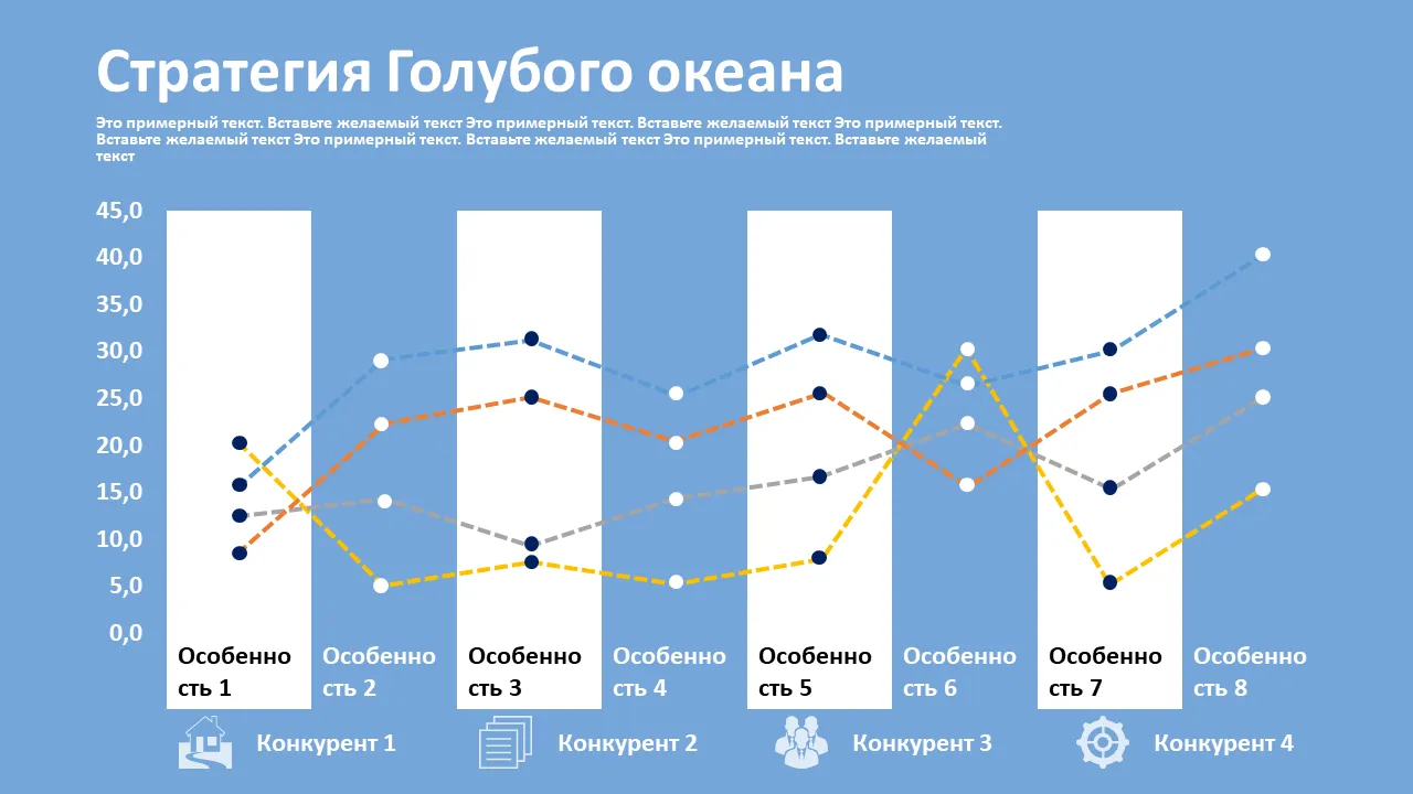 Характеристики Шаблон холста стратегии голубого океана