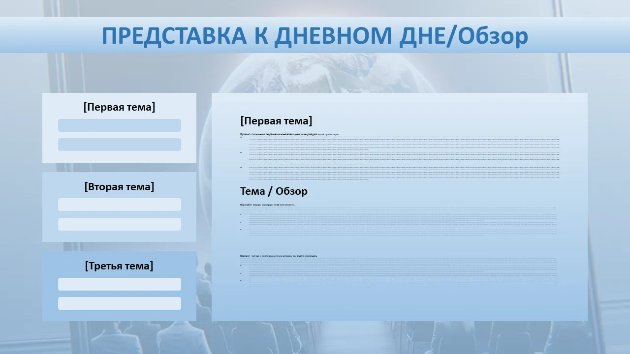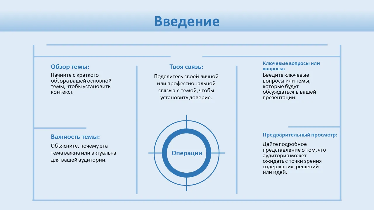 - Предварительно разработанная структура повестки дня для плавного изложения ключевых моментов