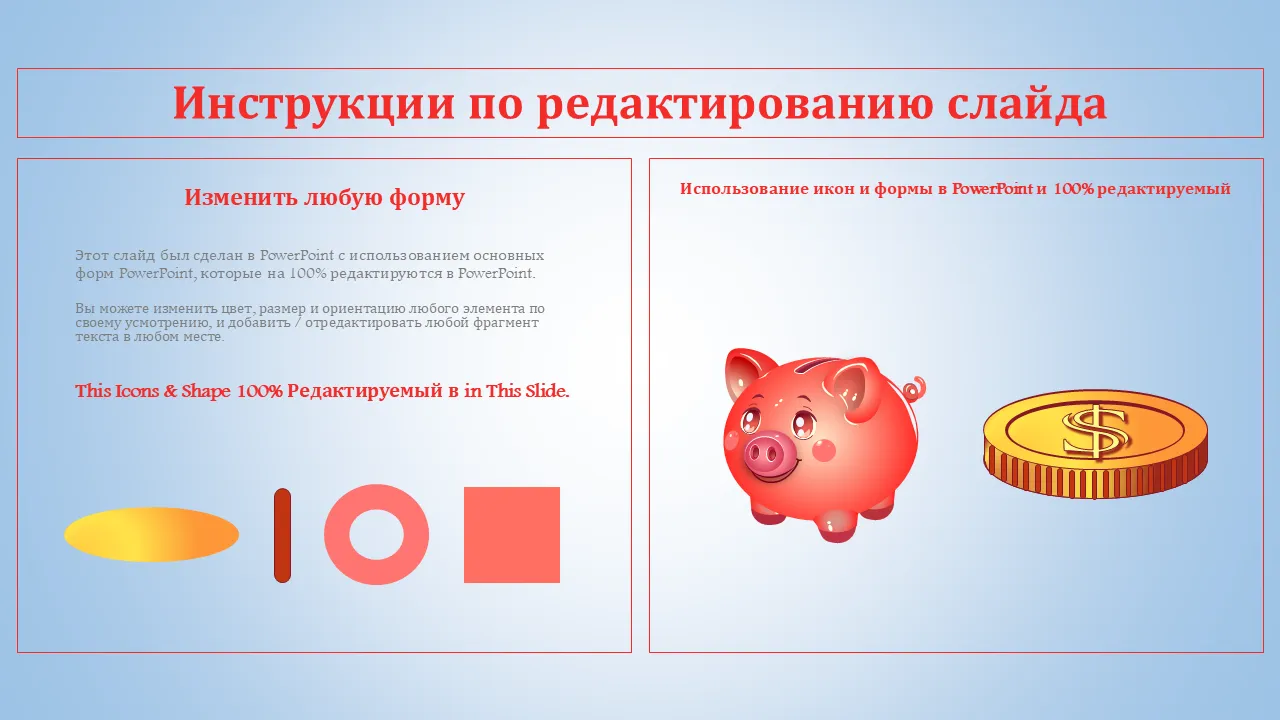Характеристики Шаблон копилки и монет для бизнес-презентаций