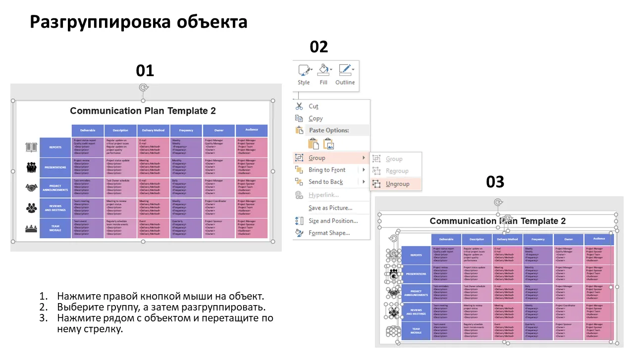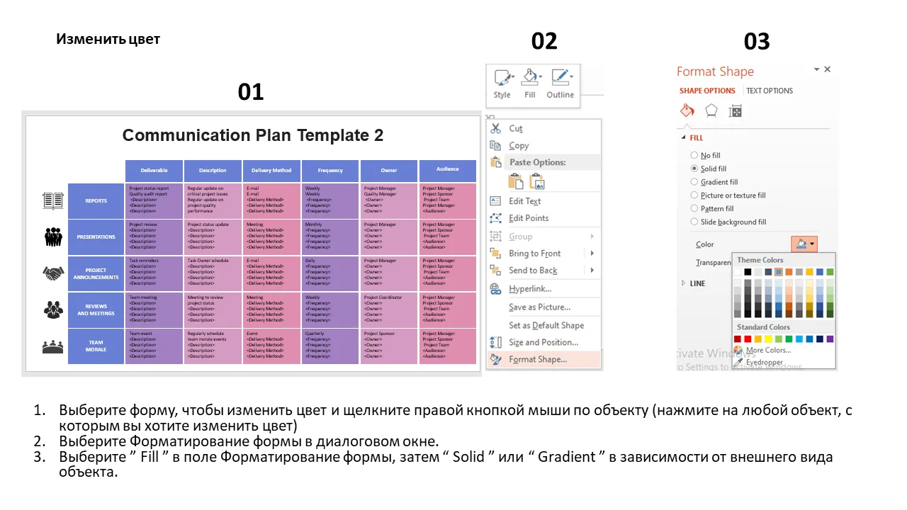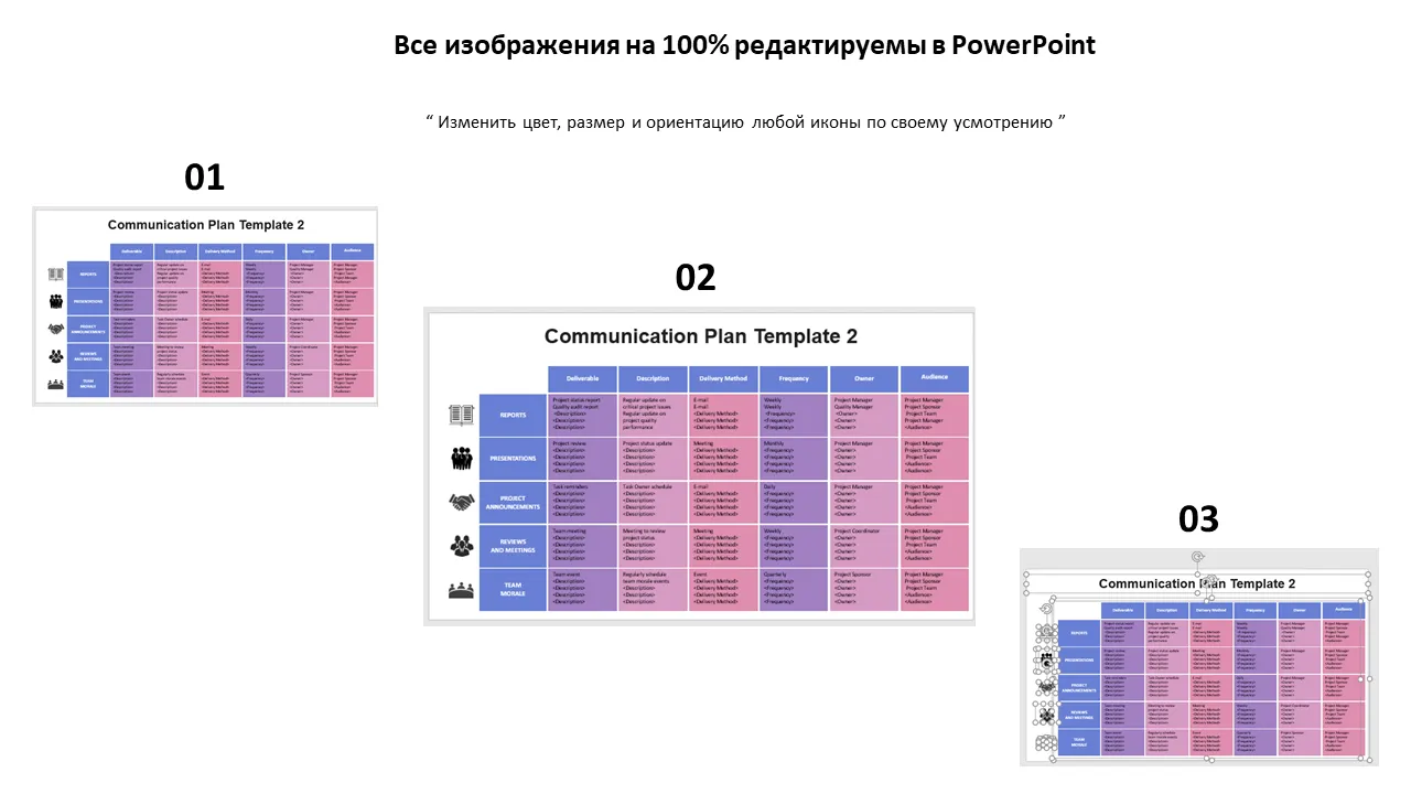 Шаблон плана коммуникаций. Объяснение в PowerPoint