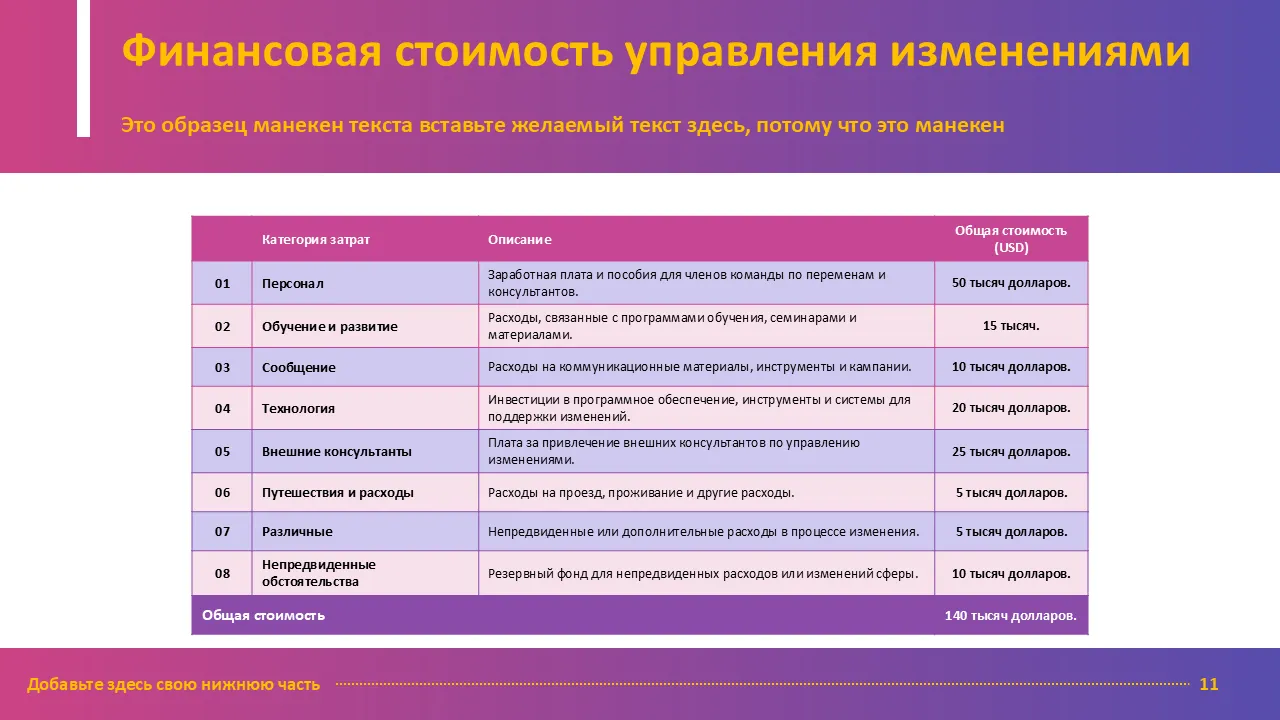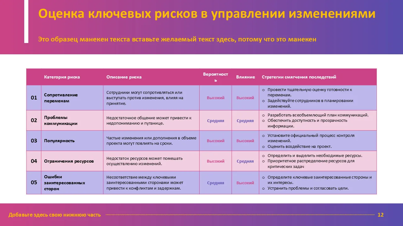 Шаблон плана управления организационными изменениями для бизнес-презентаций