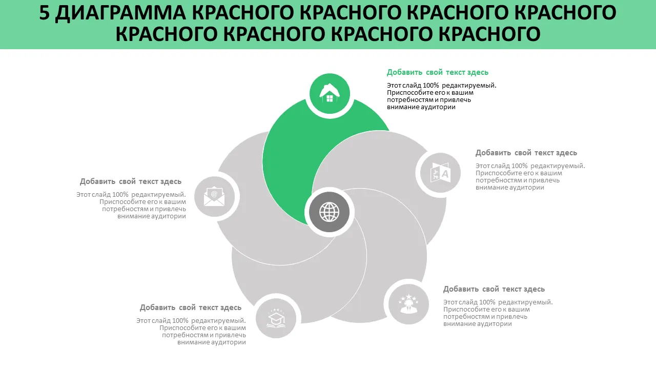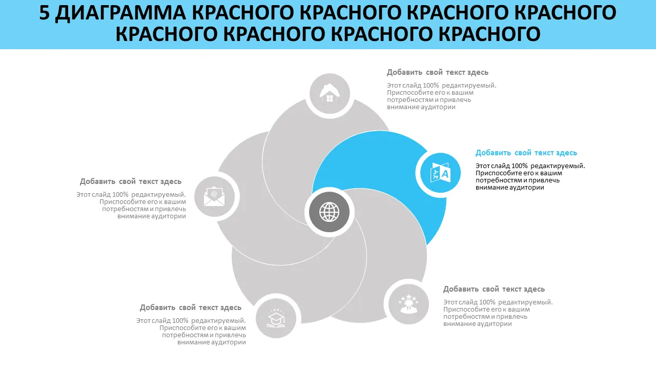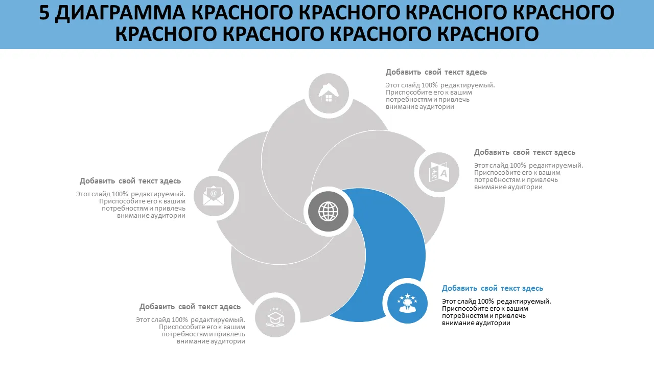 Шаблон PowerPoint с 5-круговой диаграммой Венна для бизнес-стратегии