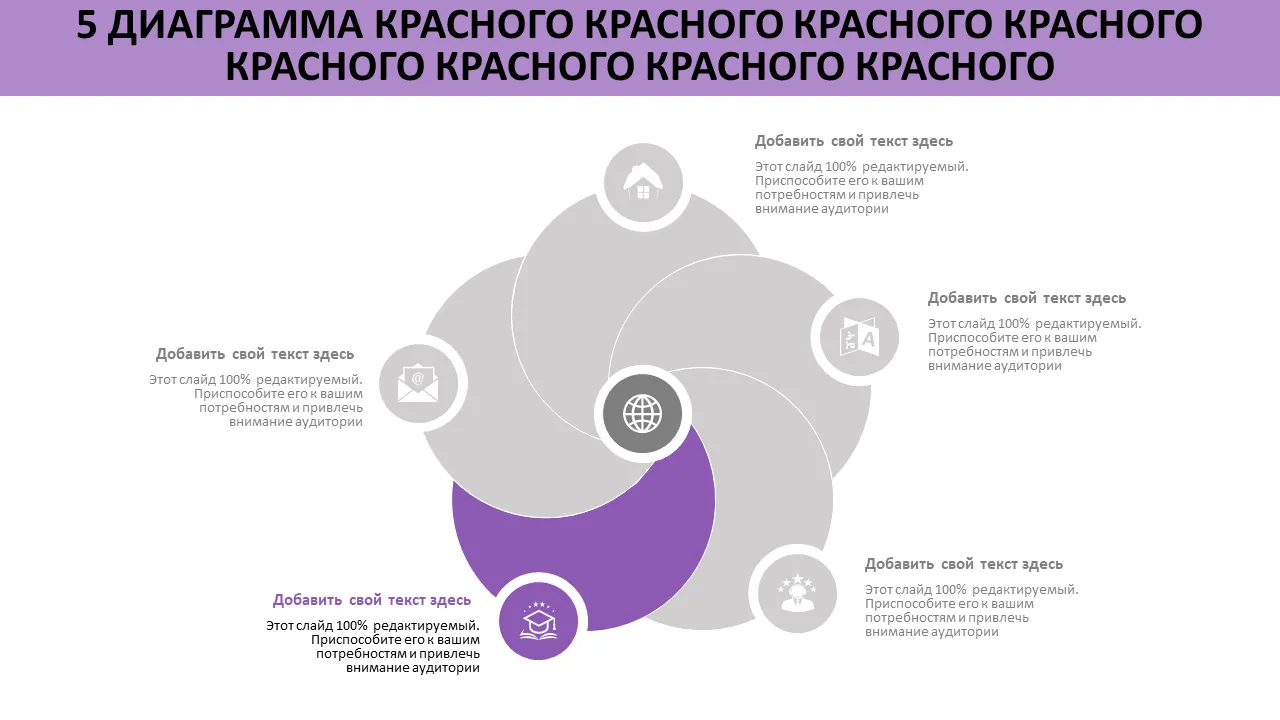 Шаблон Powerpoint 5-круговой диаграммы Венна