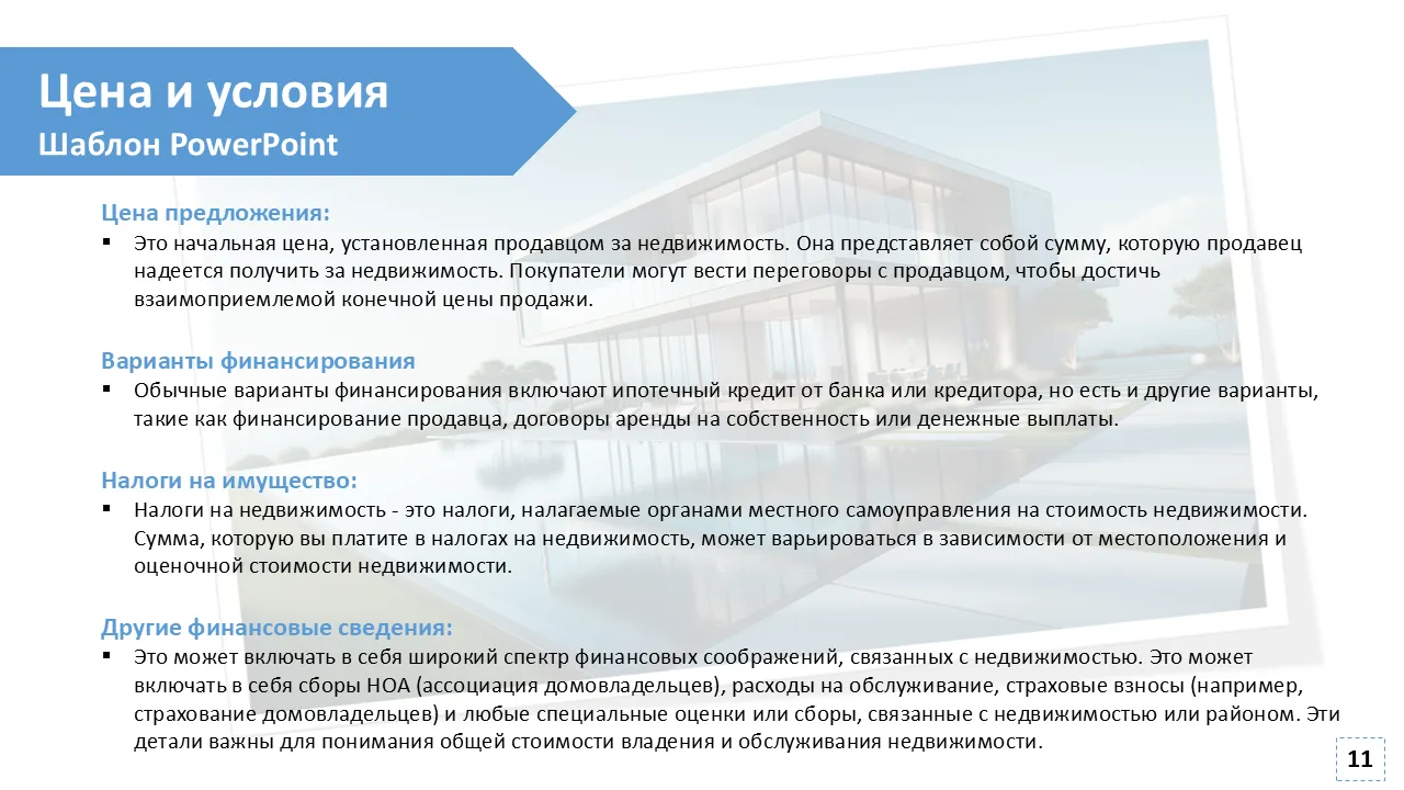 Объяснение шаблона Powerpoint для листинга недвижимости