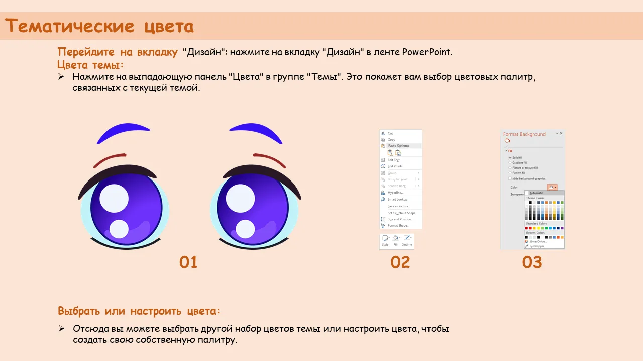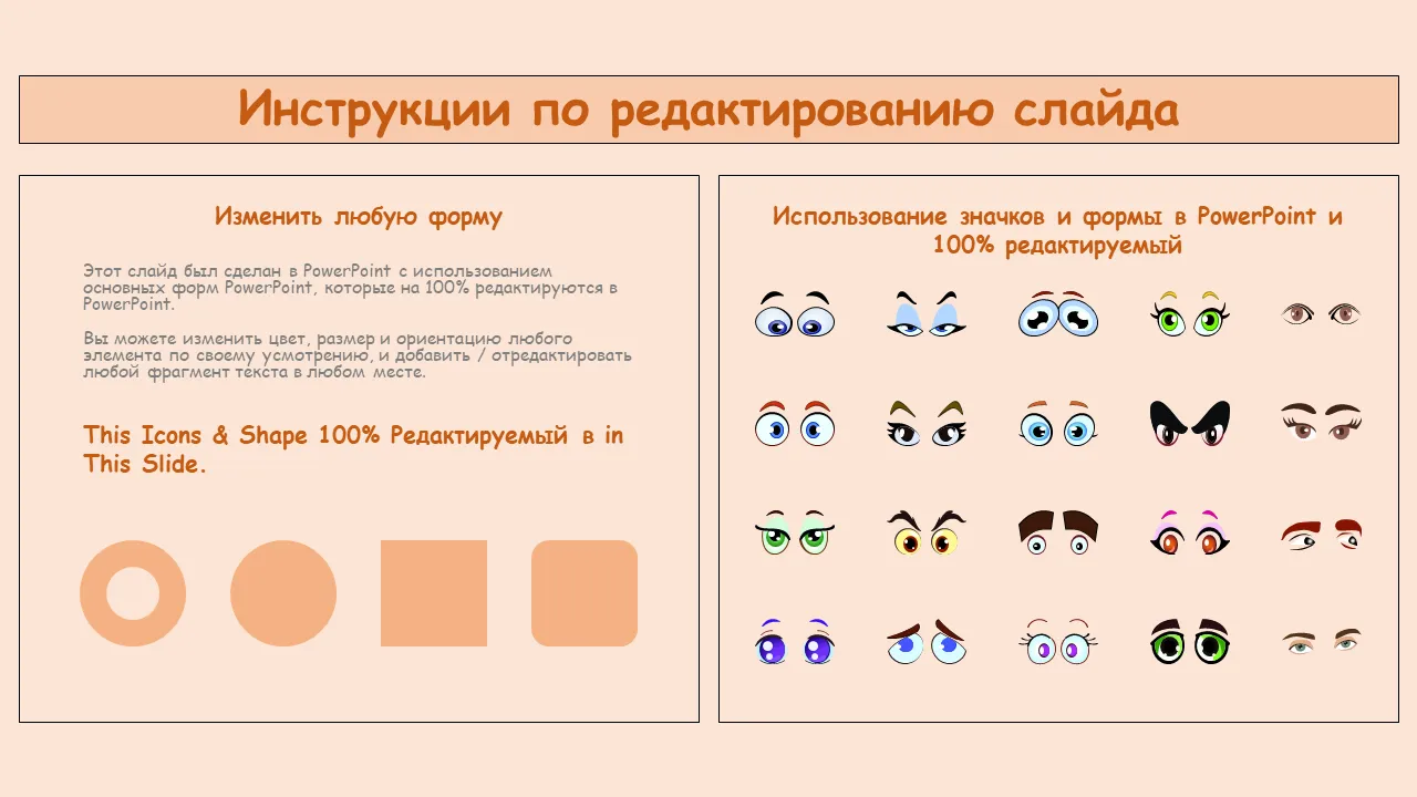 - Выразительная мультяшная графика в виде глаз, передающая эмоции и индивидуальность на слайдах