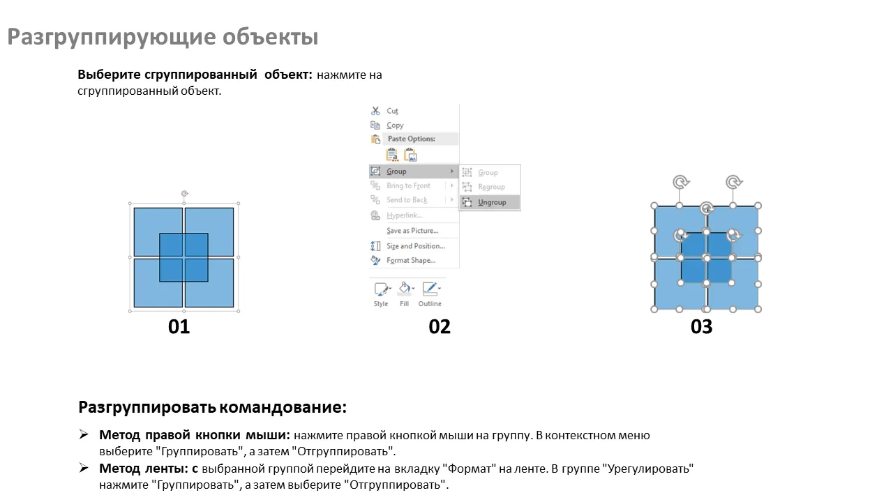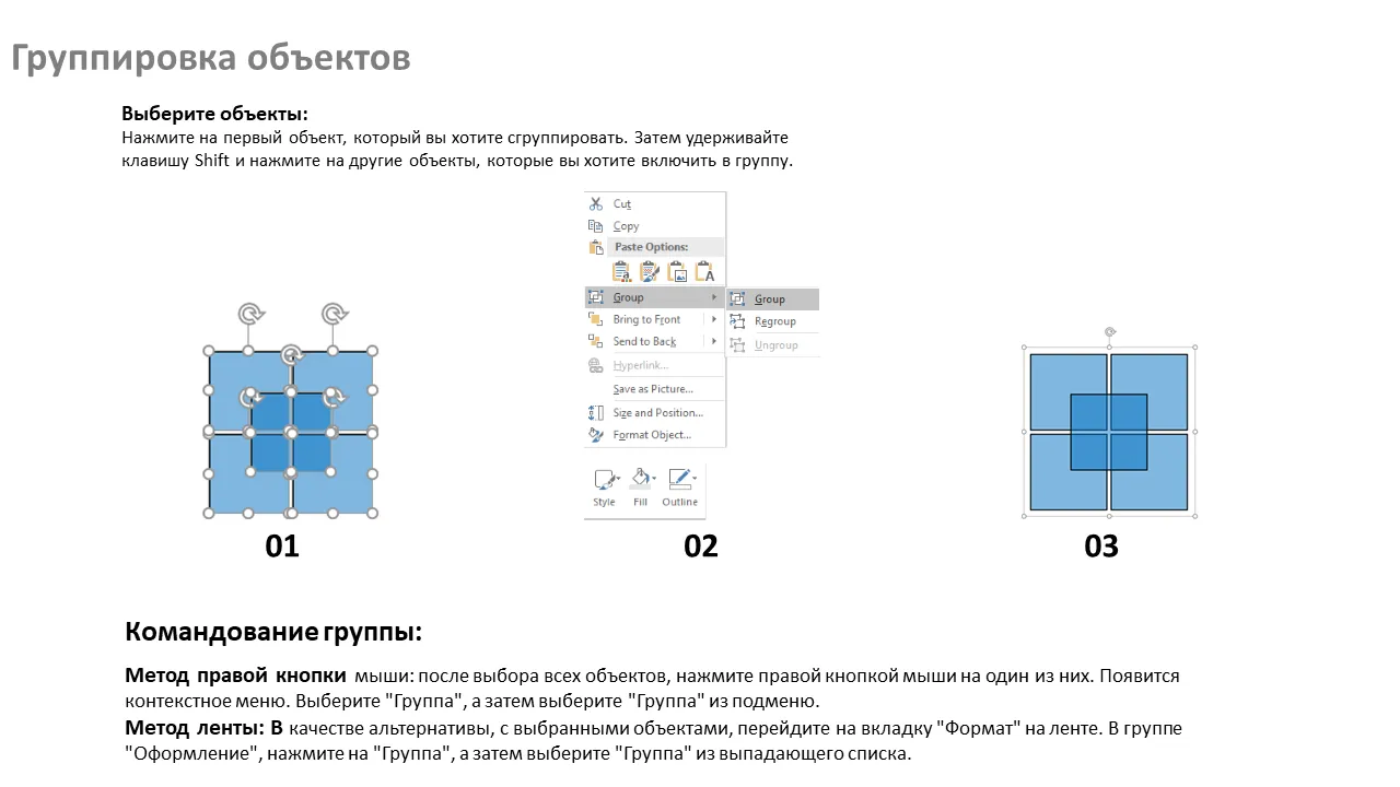 - Включает инструкции по группировке элементов без нарушения дизайна.