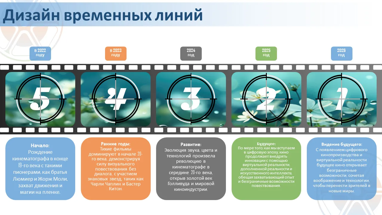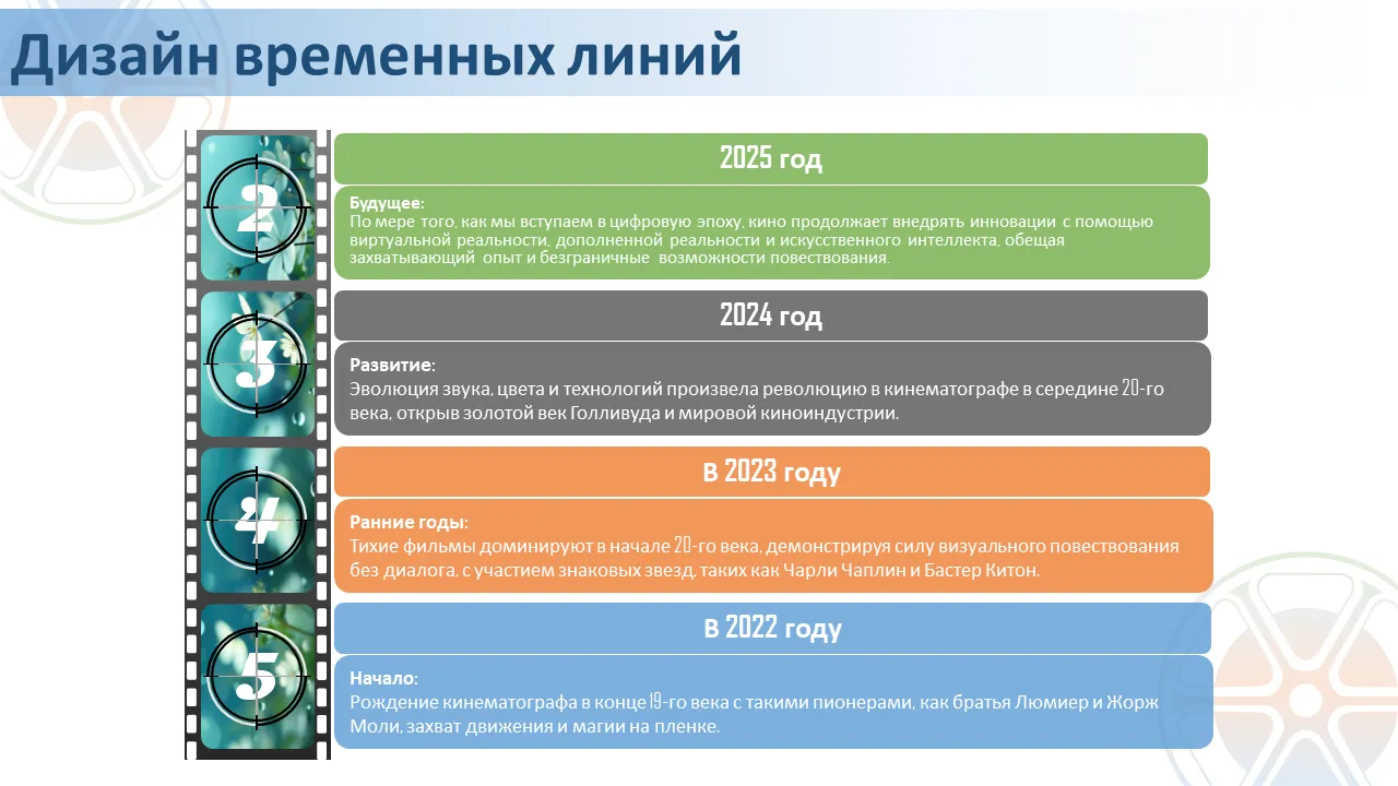 Характеристики Шаблон временной шкалы кино для Powerpoint