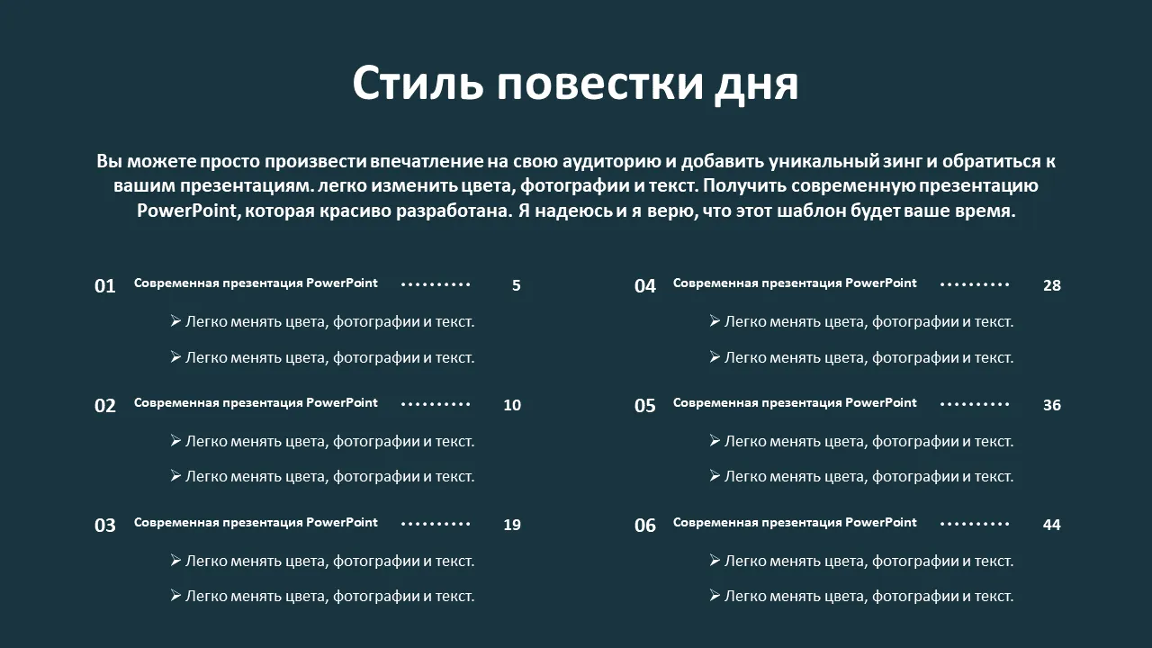 - Гибкая цветовая палитра, позволяющая легко настроить в соответствии с фирменным стилем или темой презентации.