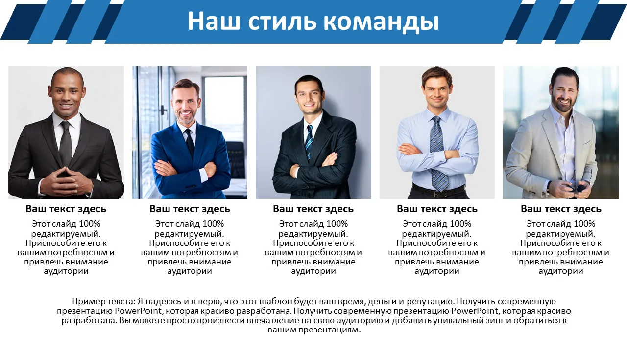 - Гибкое редактирование цветов и изображений в соответствии с рекомендациями бренда или тоном презентации