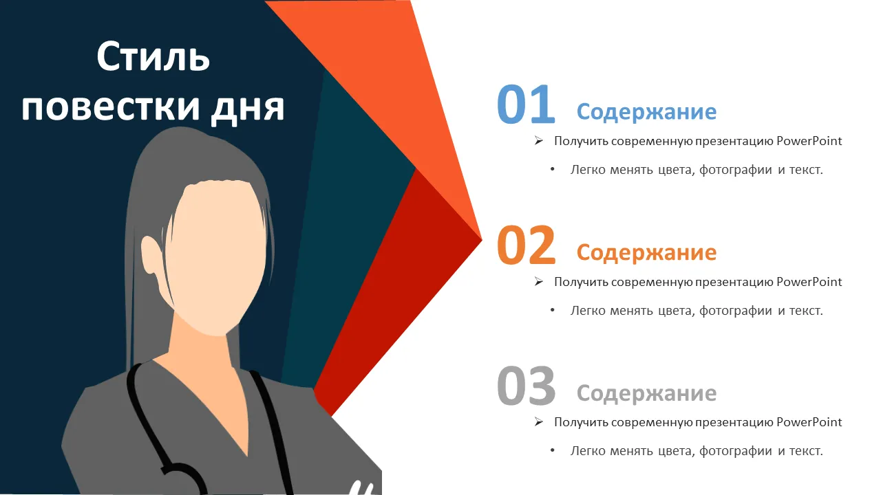 Этот профессионально разработанный шаблон PowerPoint представляет концепции здравоохранения посредством структурированных визуальных эффектов, четкой типографики и современного языка дизайна. Он помогает докладчикам ясно и убедительно передавать сложные идеи, что делает его идеальным для залов заседаний, виртуальных собраний и презентаций на конференциях. Шаблон сочетает в себе визуальную привлекательность и информативную глубину, гарантируя, что каждый слайд приносит максимальную пользу аудитории.