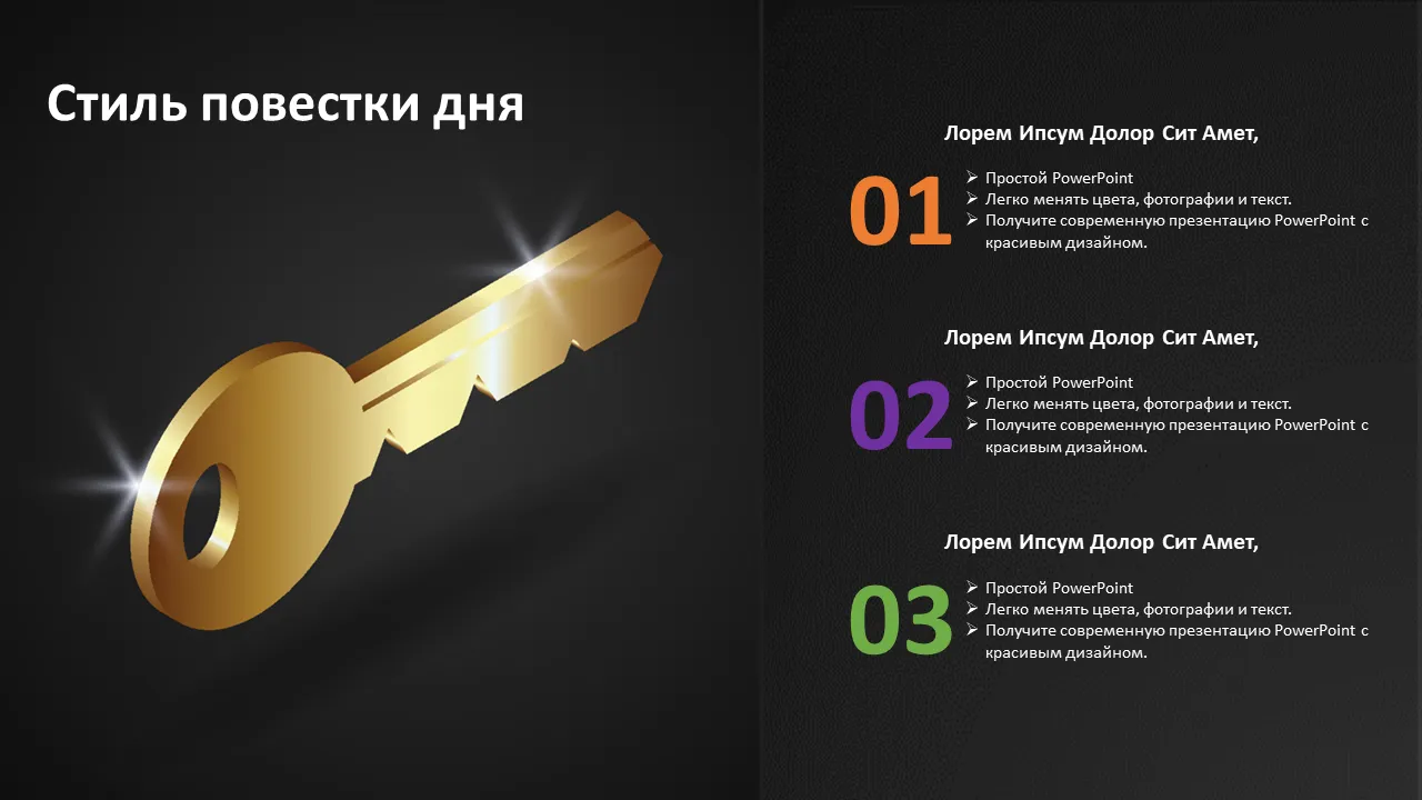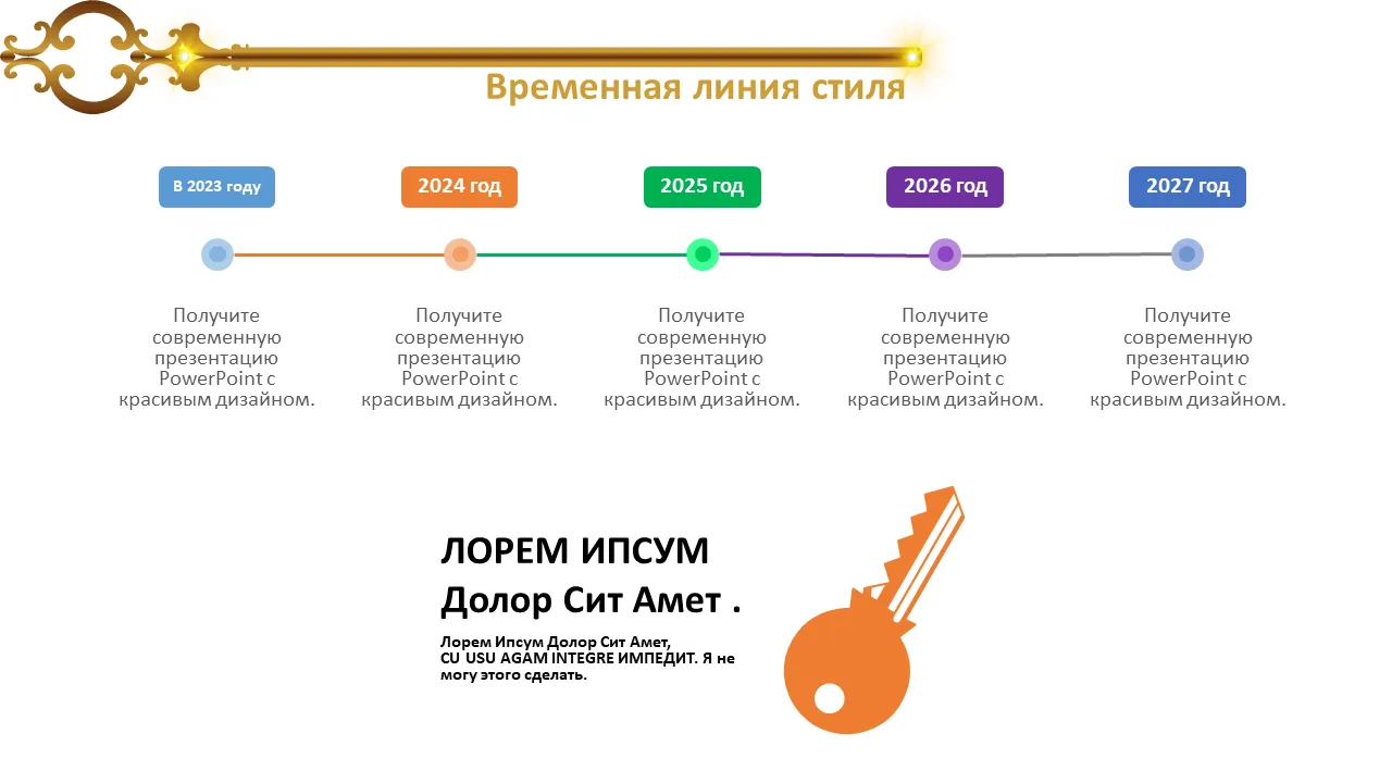 Объяснение шаблона PowerPoint с золотым ключом в руке бизнесмена