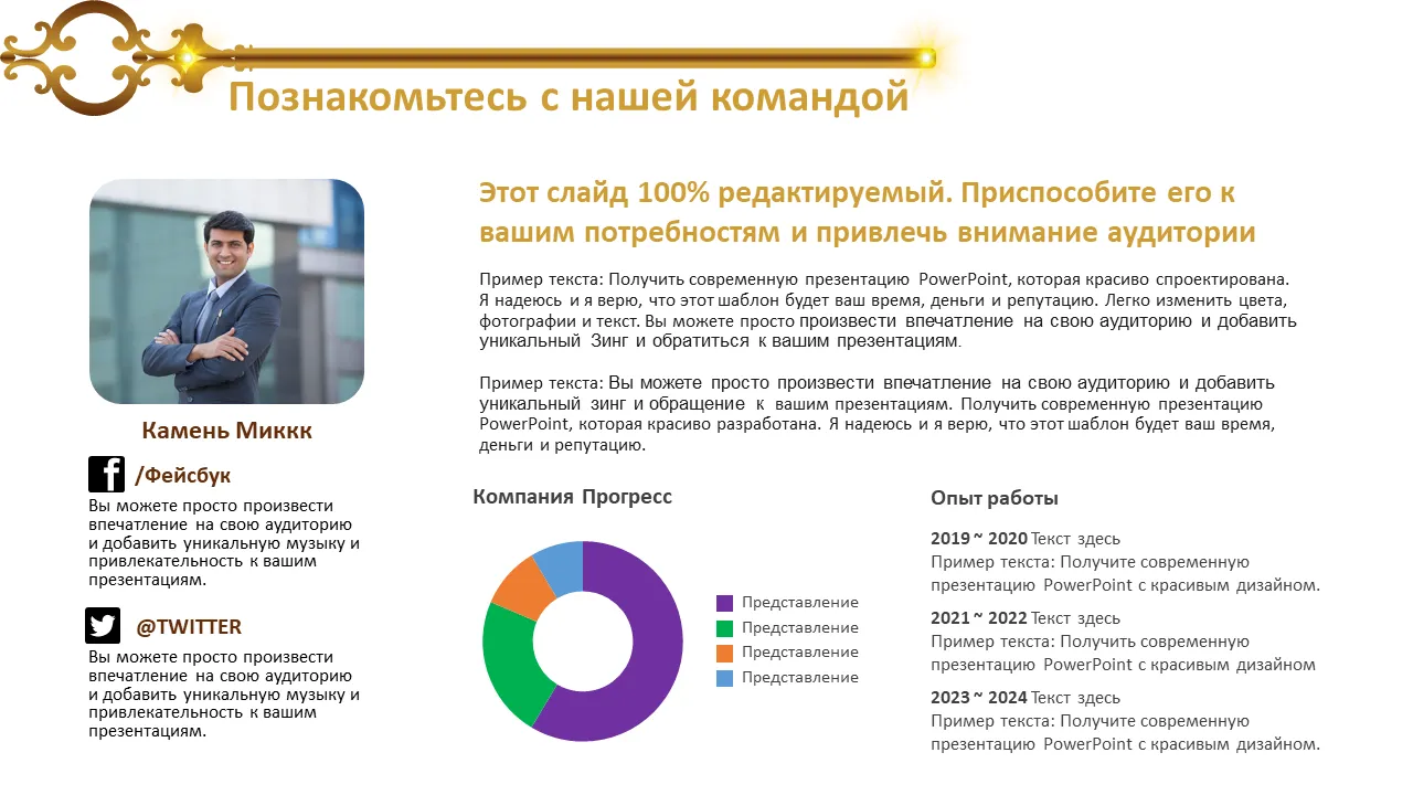 - Адаптивный макет, совместимый со всеми версиями PowerPoint и размерами экрана.