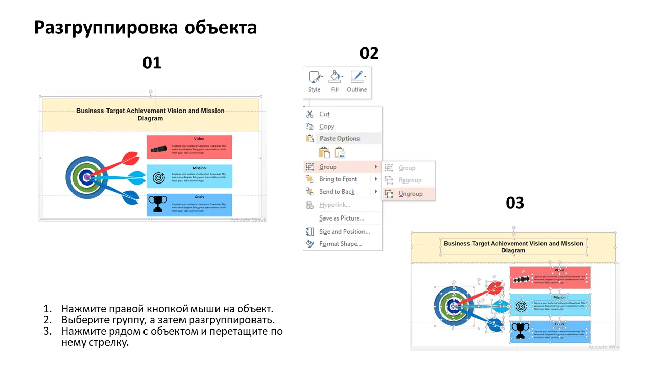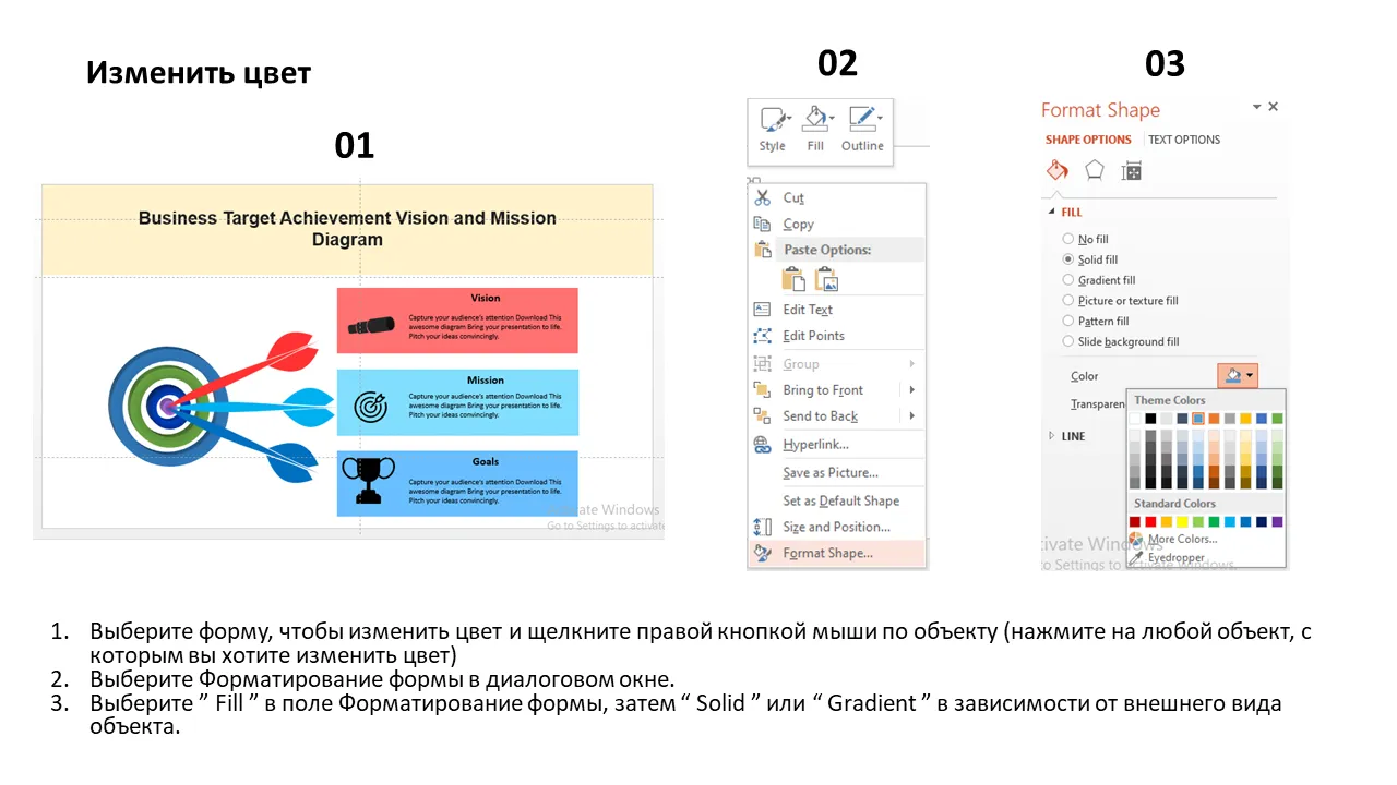 Объяснение шаблона PowerPoint «Диаграмма миссии бизнеса»