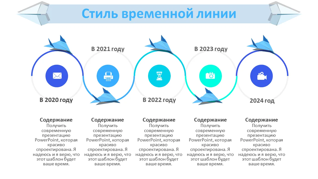 Объяснение шаблона PowerPoint «Дизайн синего бумажного самолета»