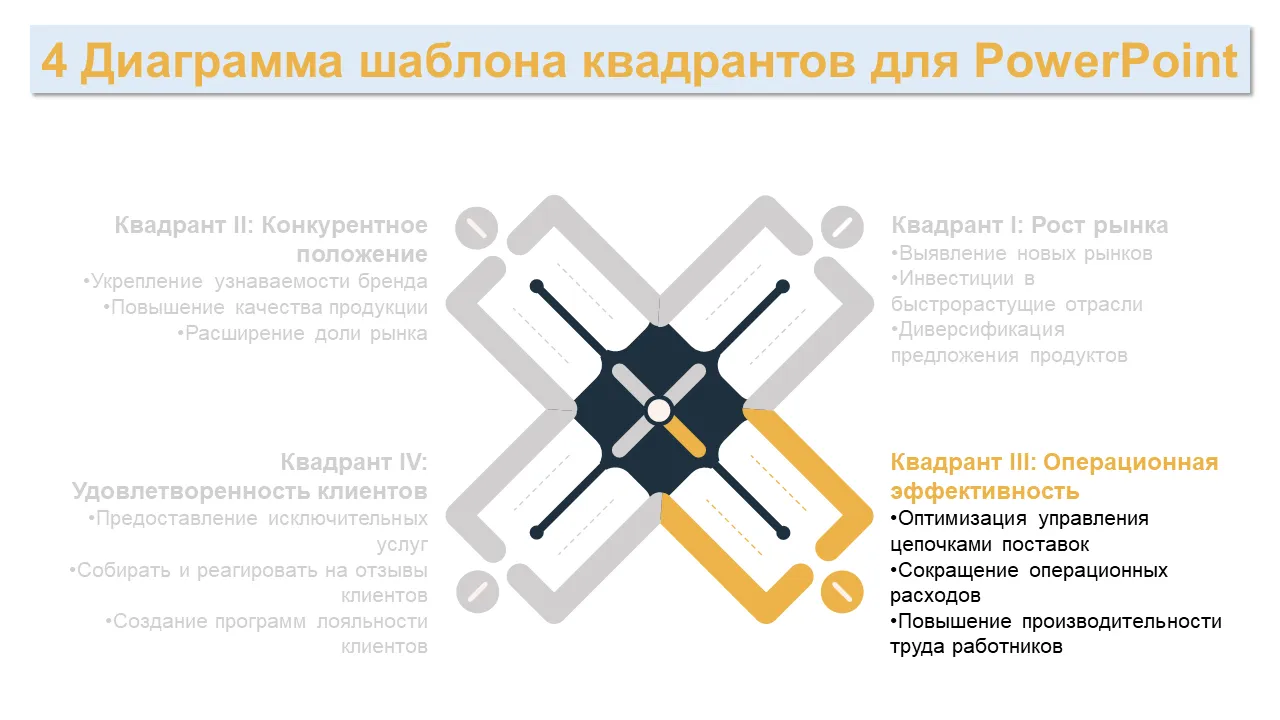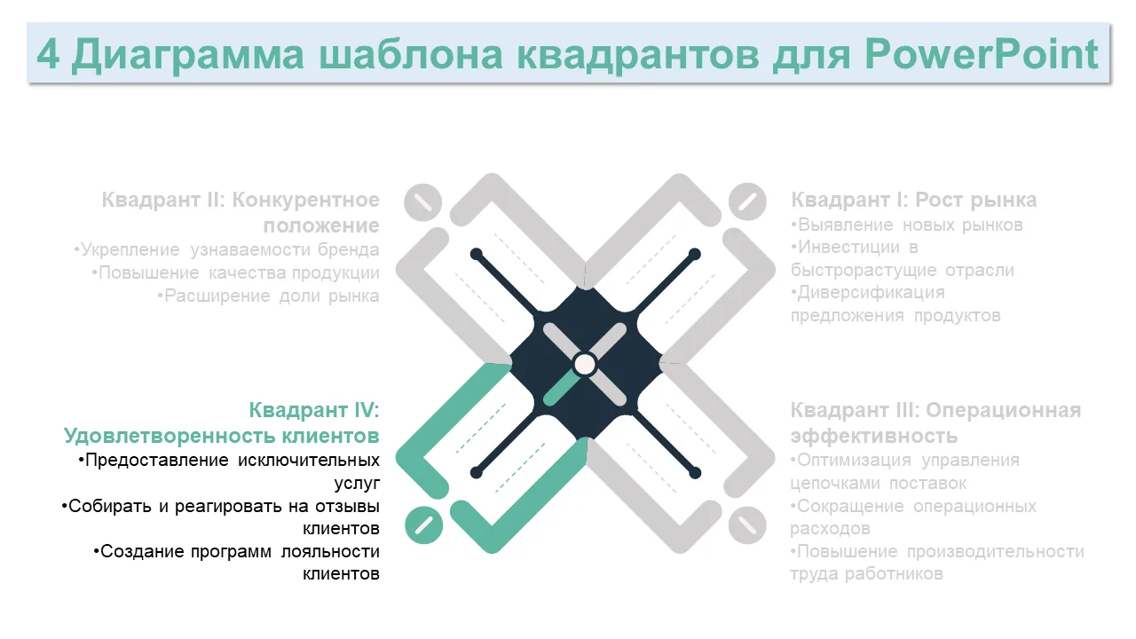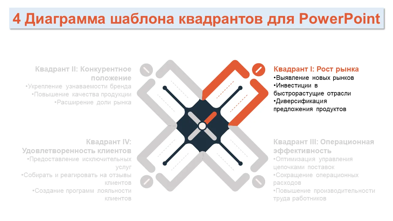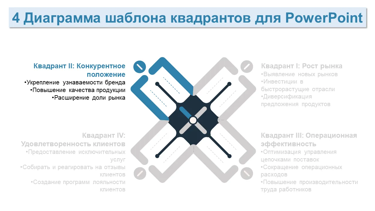 Шаблон PowerPoint с диаграммой бизнес-стратегии из 4 квадрантов