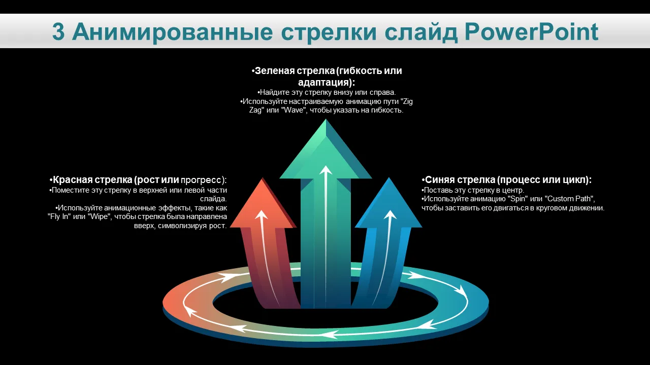 3 анимированных стрелки. Объяснение шаблона PowerPoint