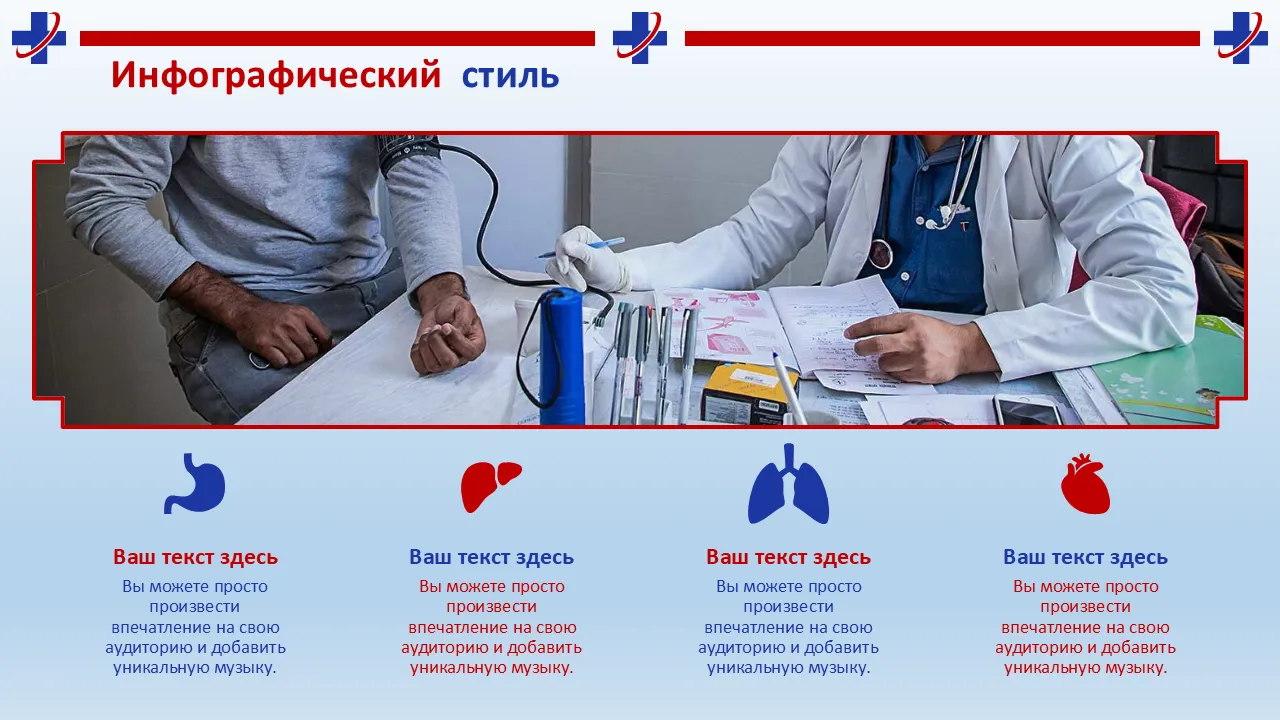 - Визуальные элементы на медицинскую тематику и иконки здравоохранения