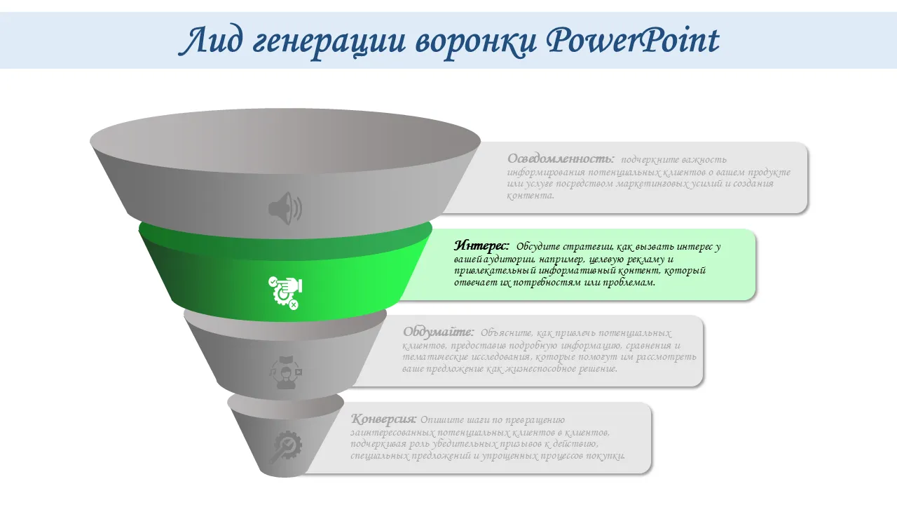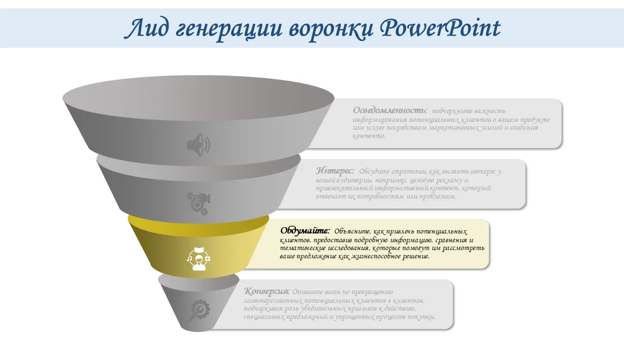 Объяснение Powerpoint воронки привлечения потенциальных клиентов